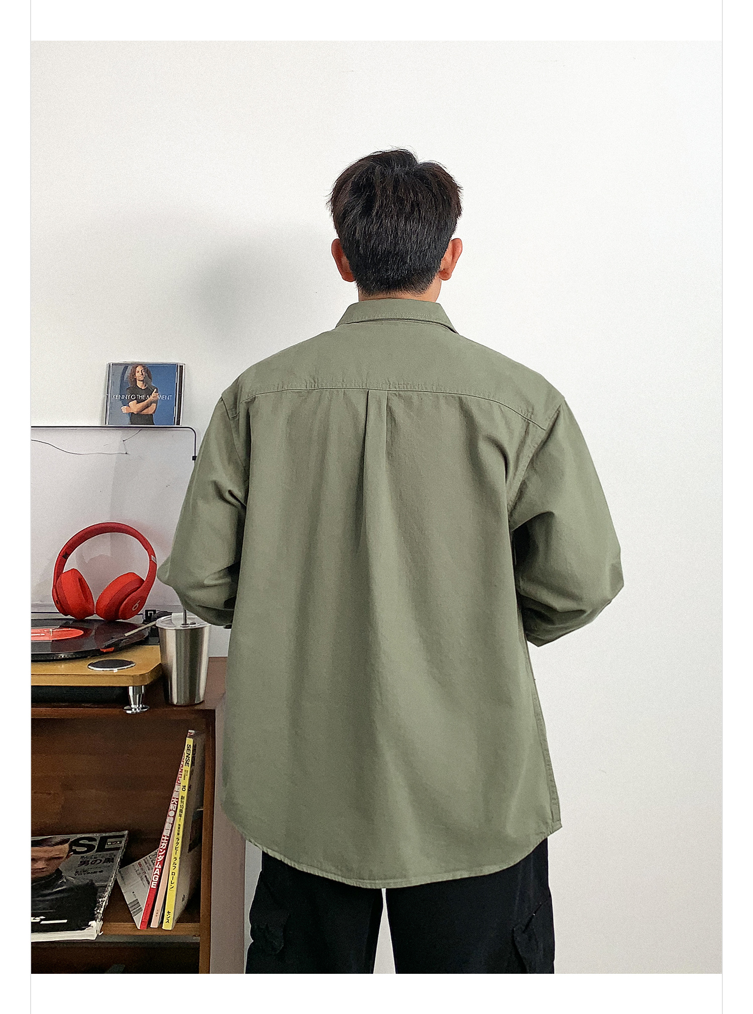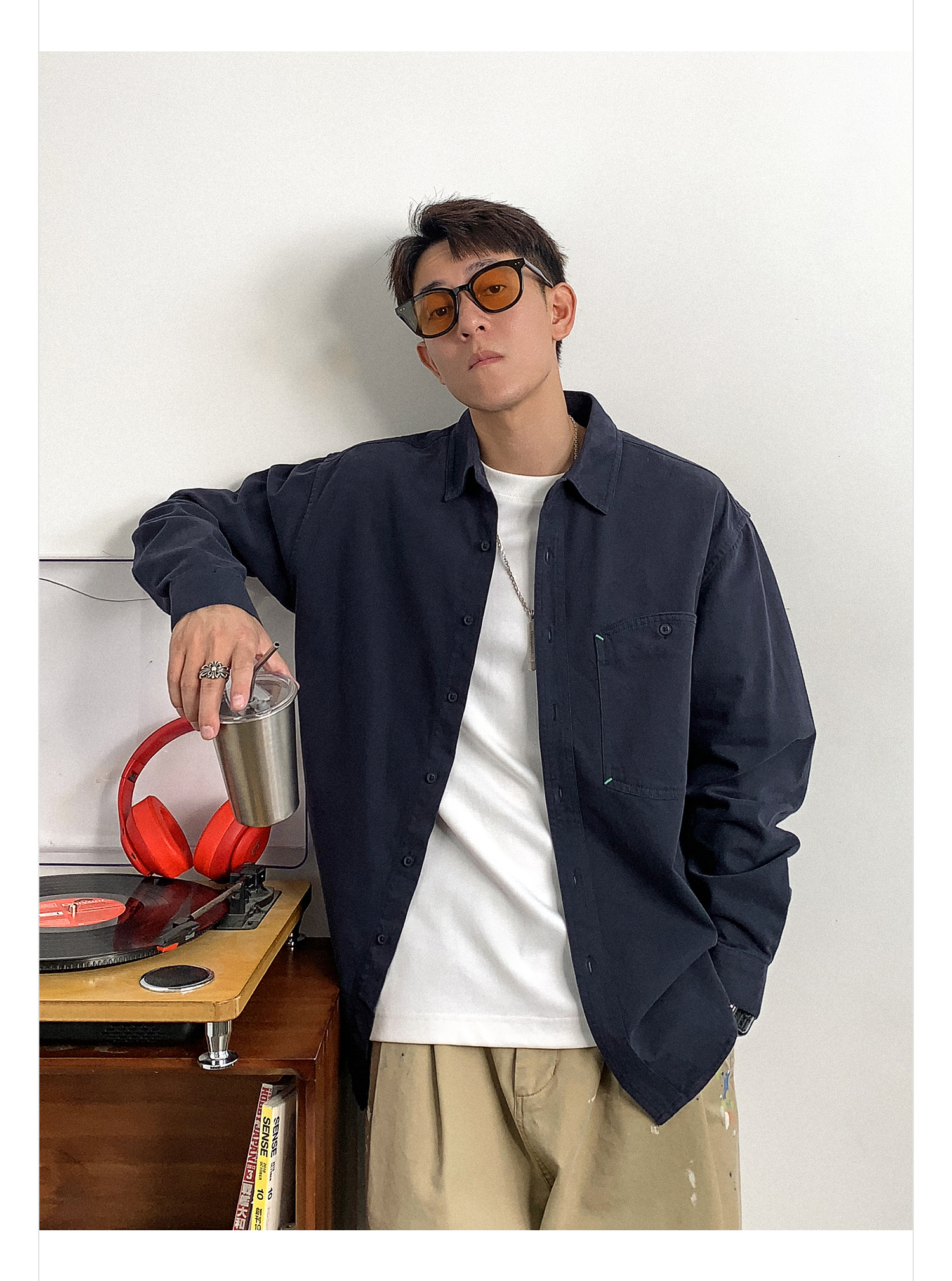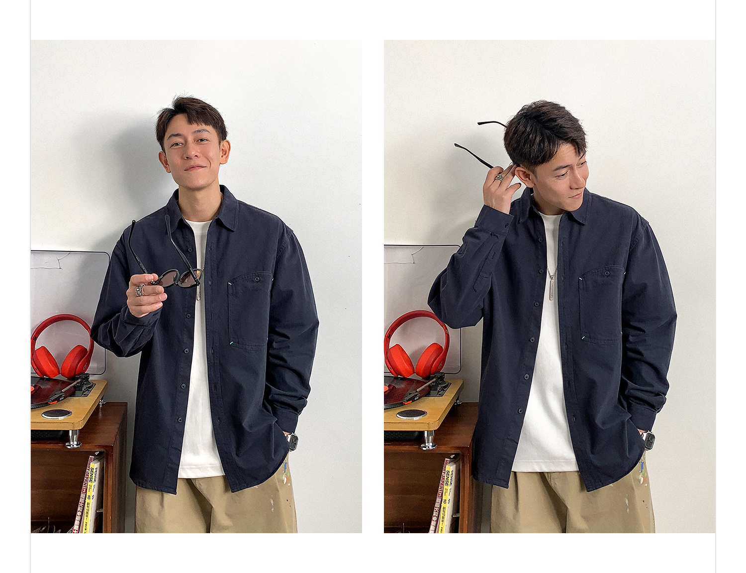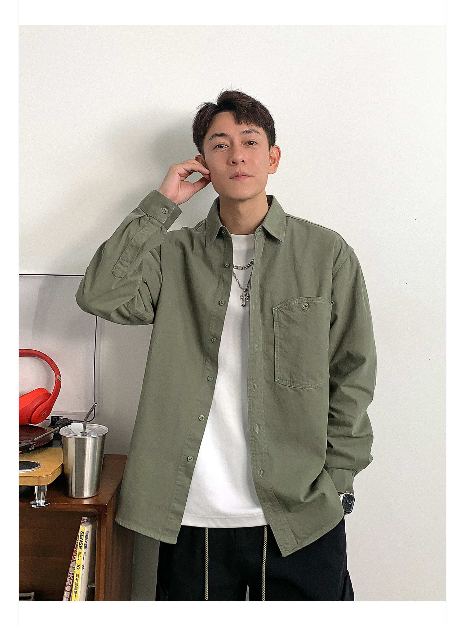 徐太浪日系男装口袋长袖衬衫男春秋2024新款大码休闲纯色衬衣外套