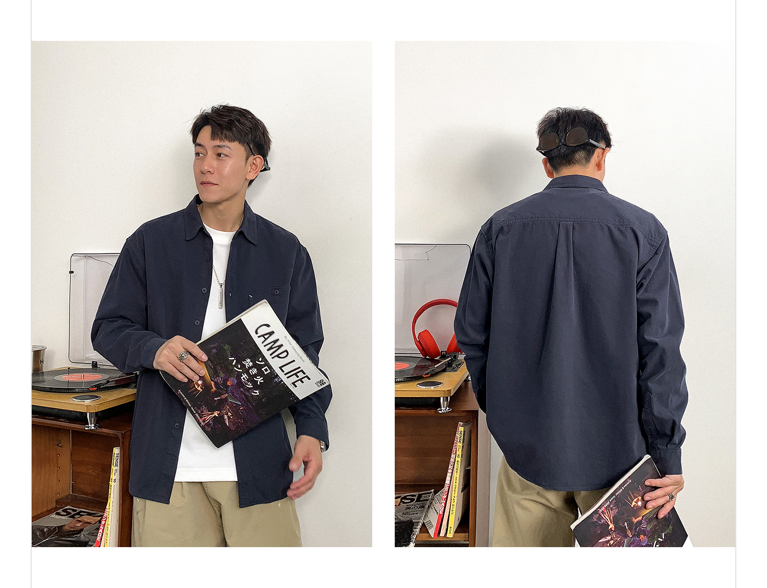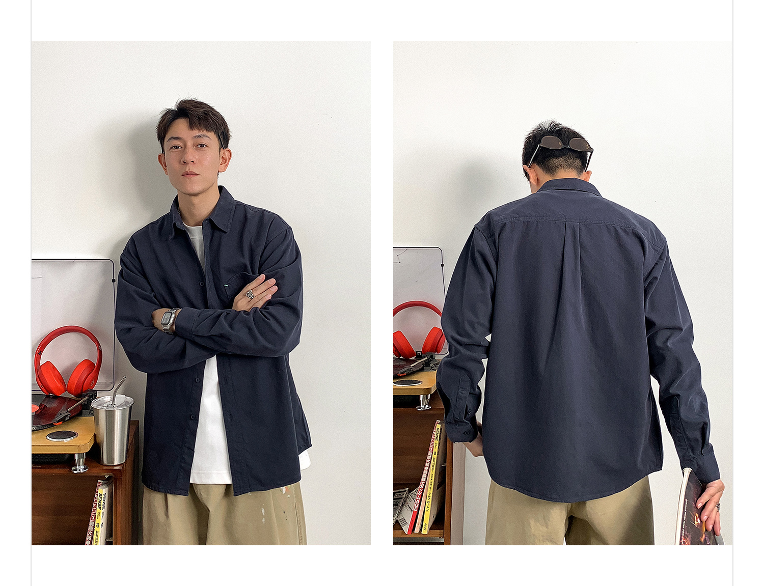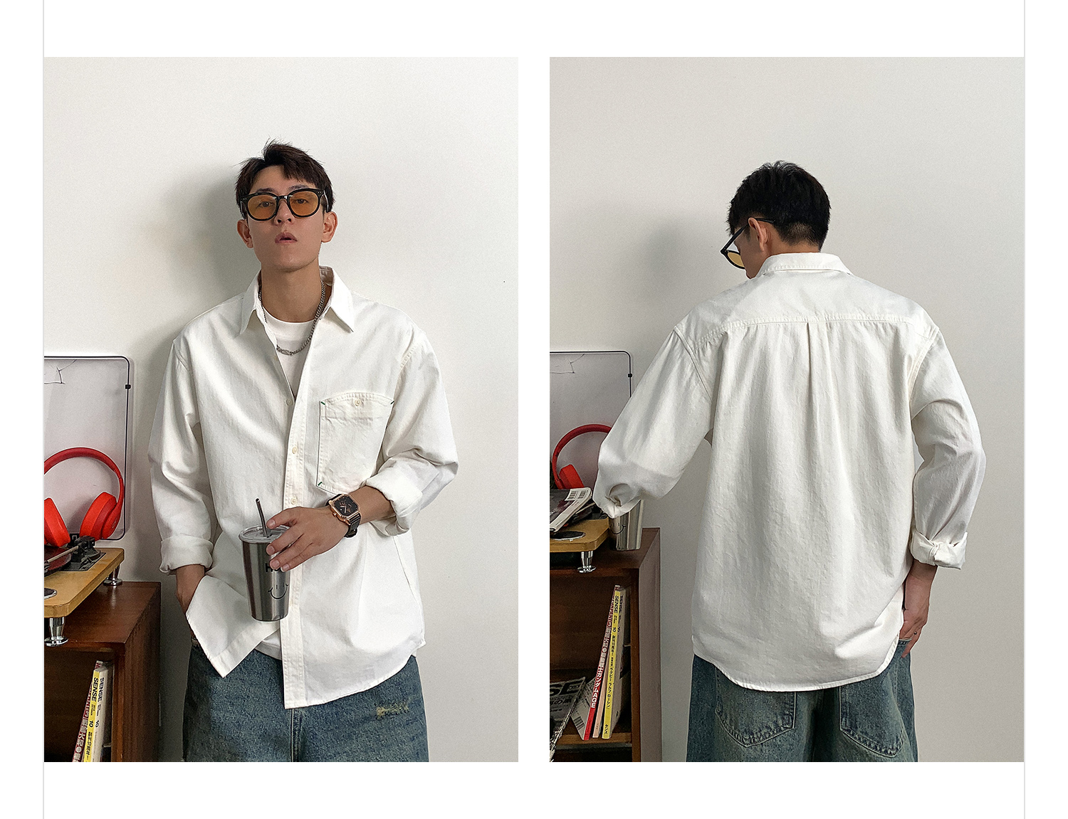 徐太浪日系男装口袋长袖衬衫男春秋2024新款大码休闲纯色衬衣外套