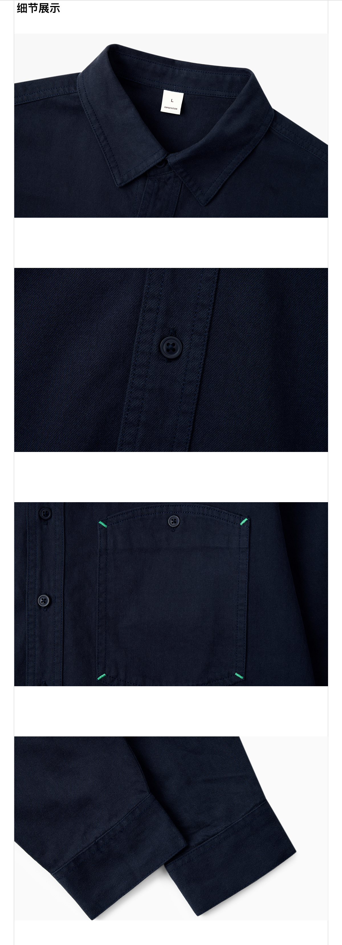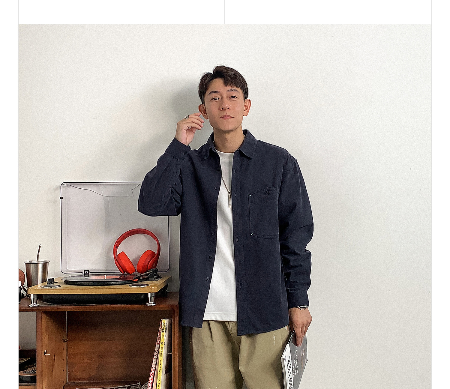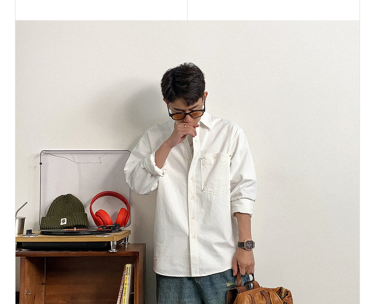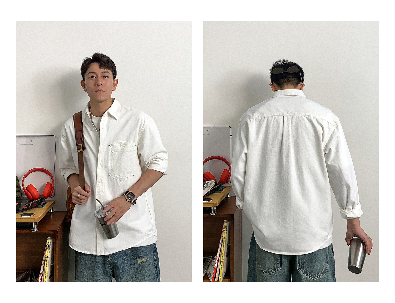 徐太浪日系男装口袋长袖衬衫男春秋2024新款大码休闲纯色衬衣外套