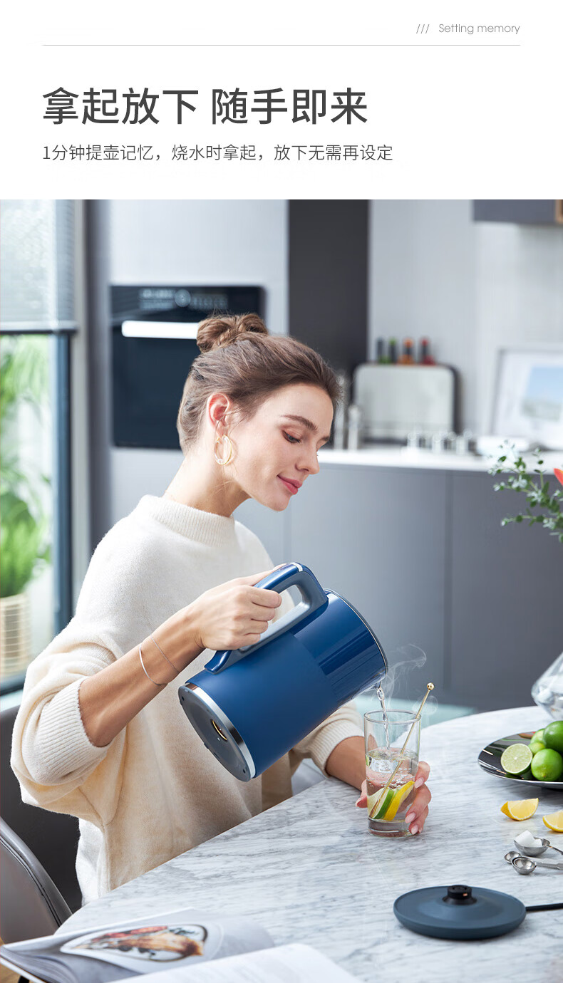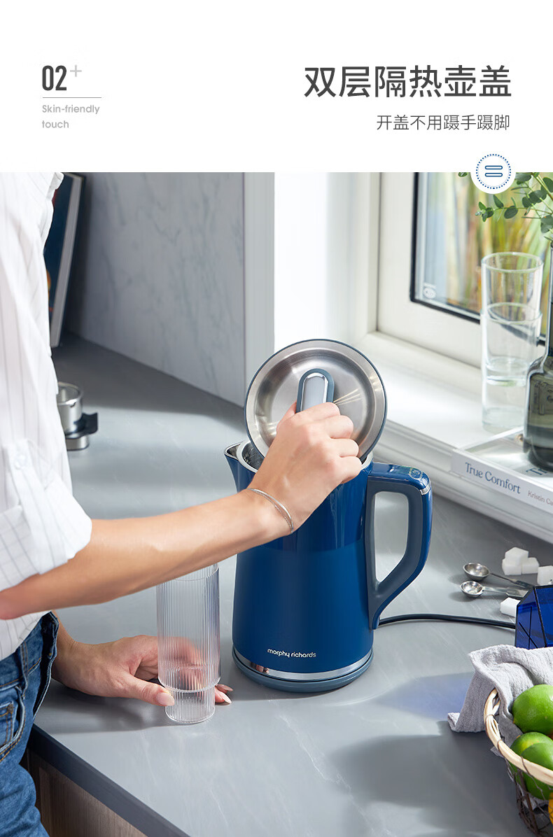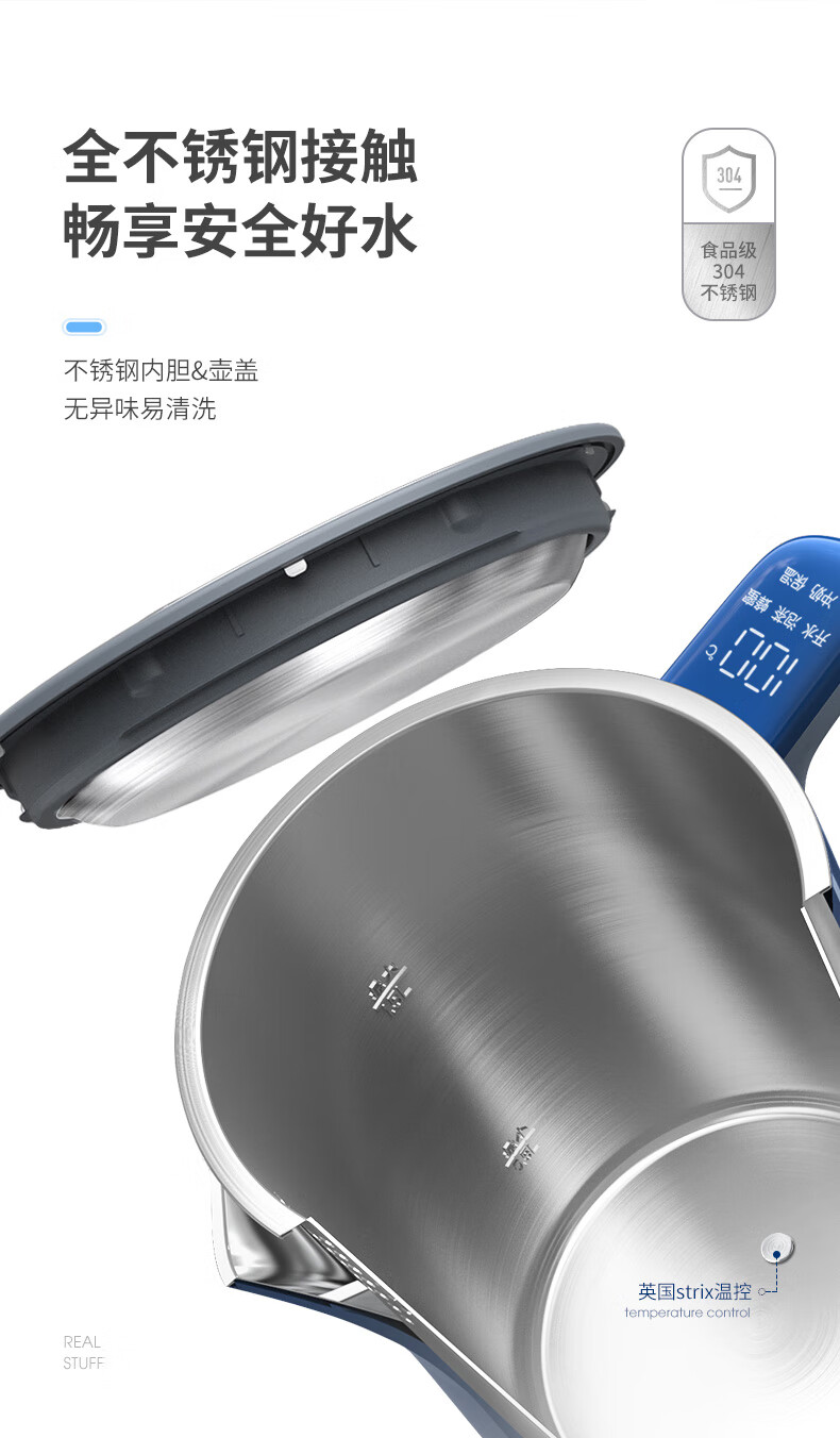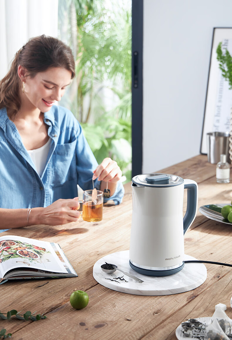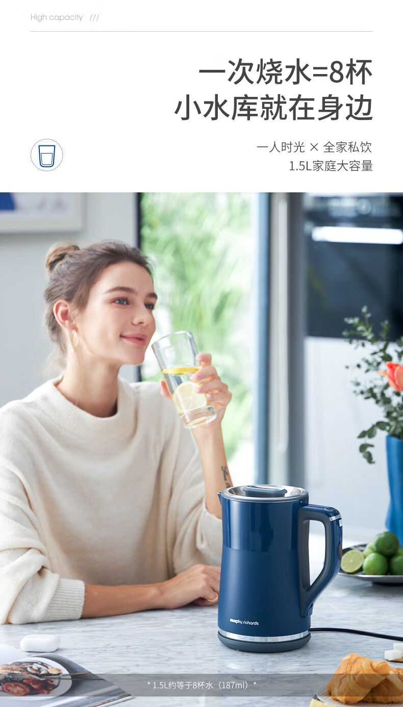 摩飞电器(Morphyrichards)电热水壶 烧水壶 热水壶 家用恒温水壶 1.5L全不锈钢304双层防烫实时显温开水壶 MR6070 白