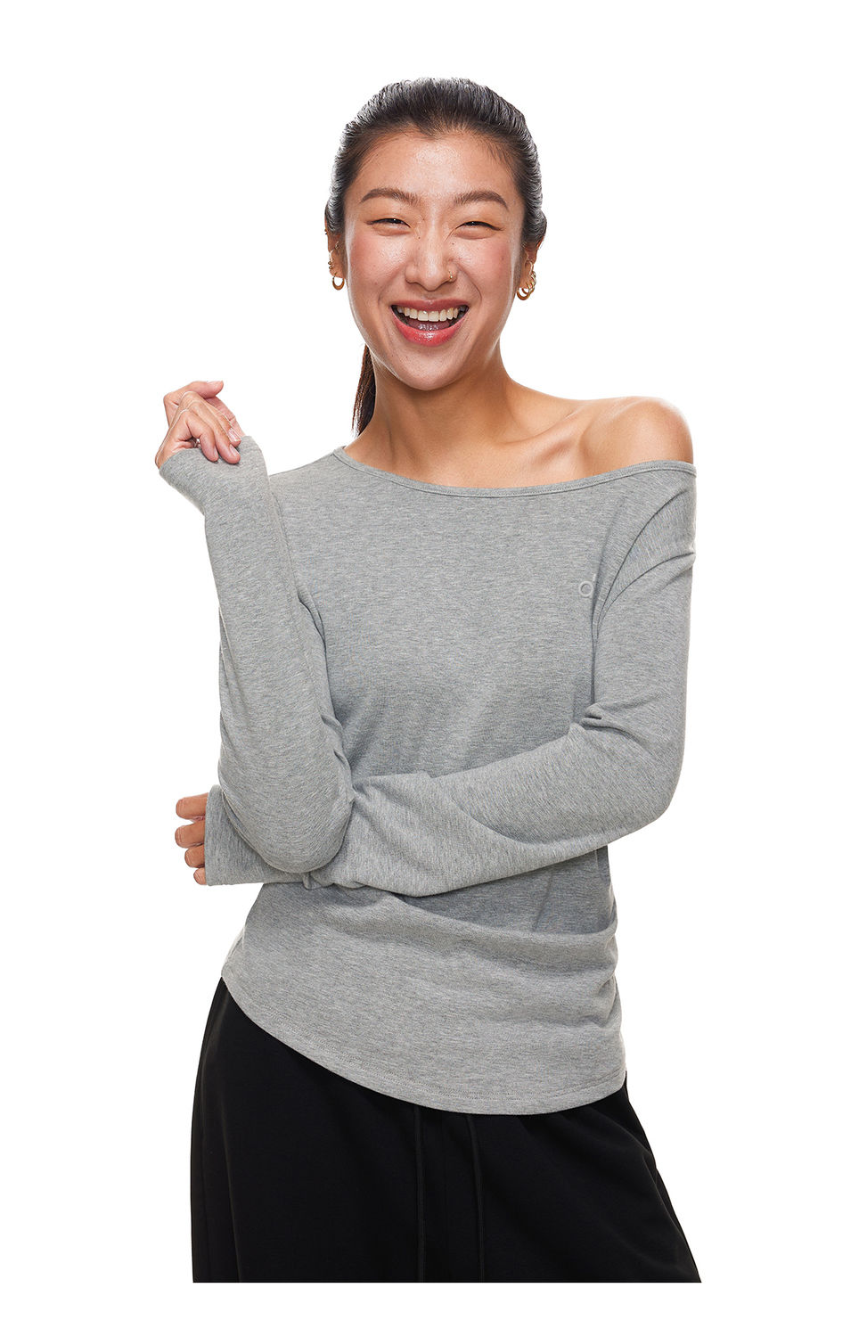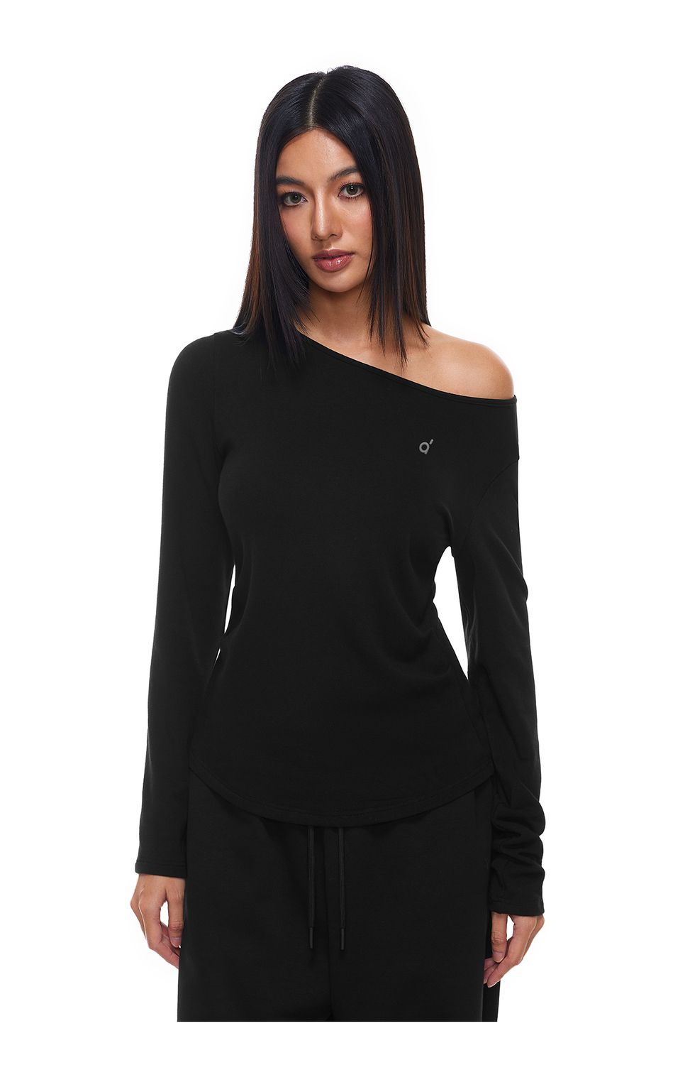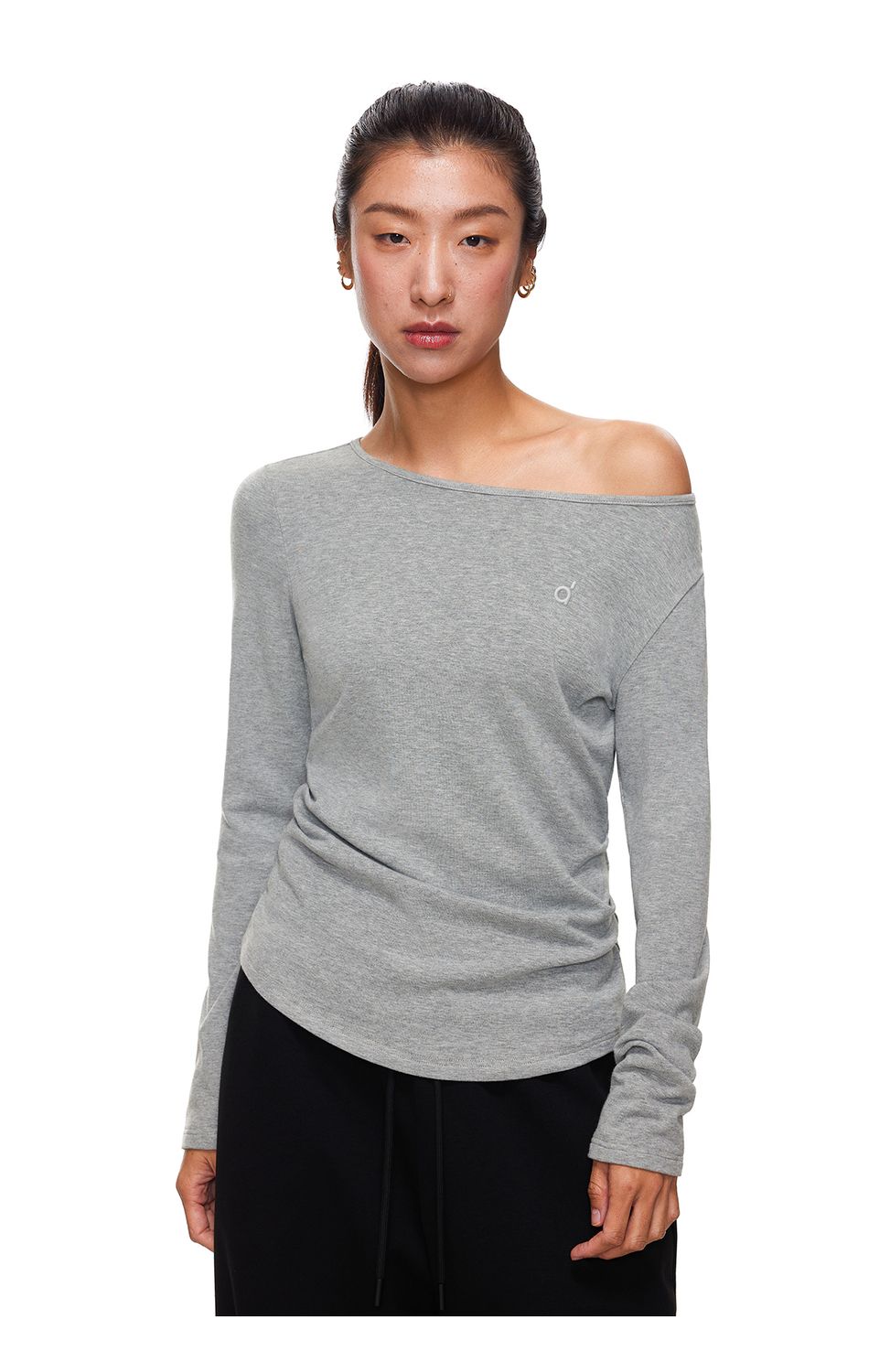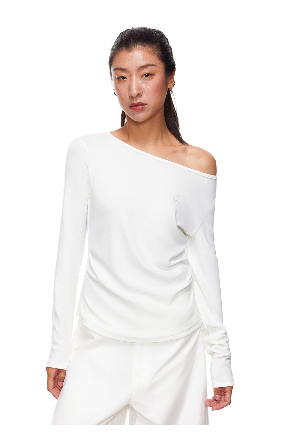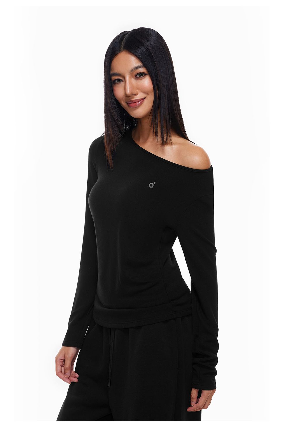 【178元任选3件】FDR旗舰店 蓄热保暖亲肤弹力斜肩长袖t恤女修身显瘦露肩运动上衣