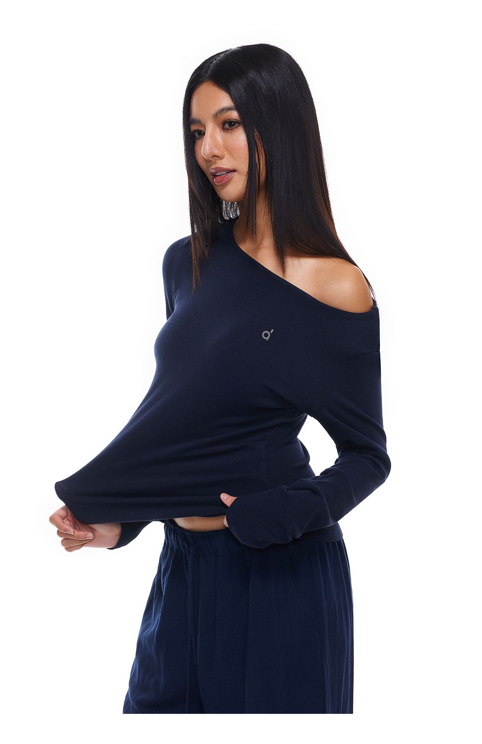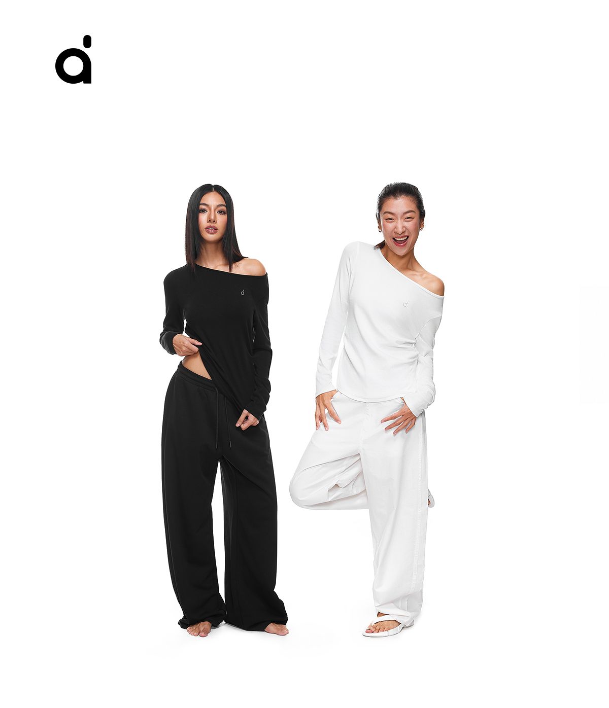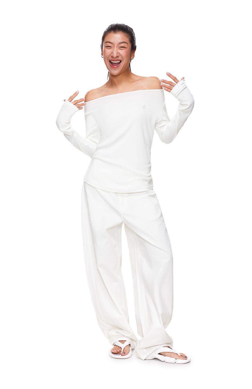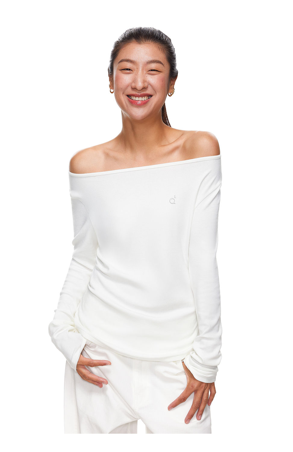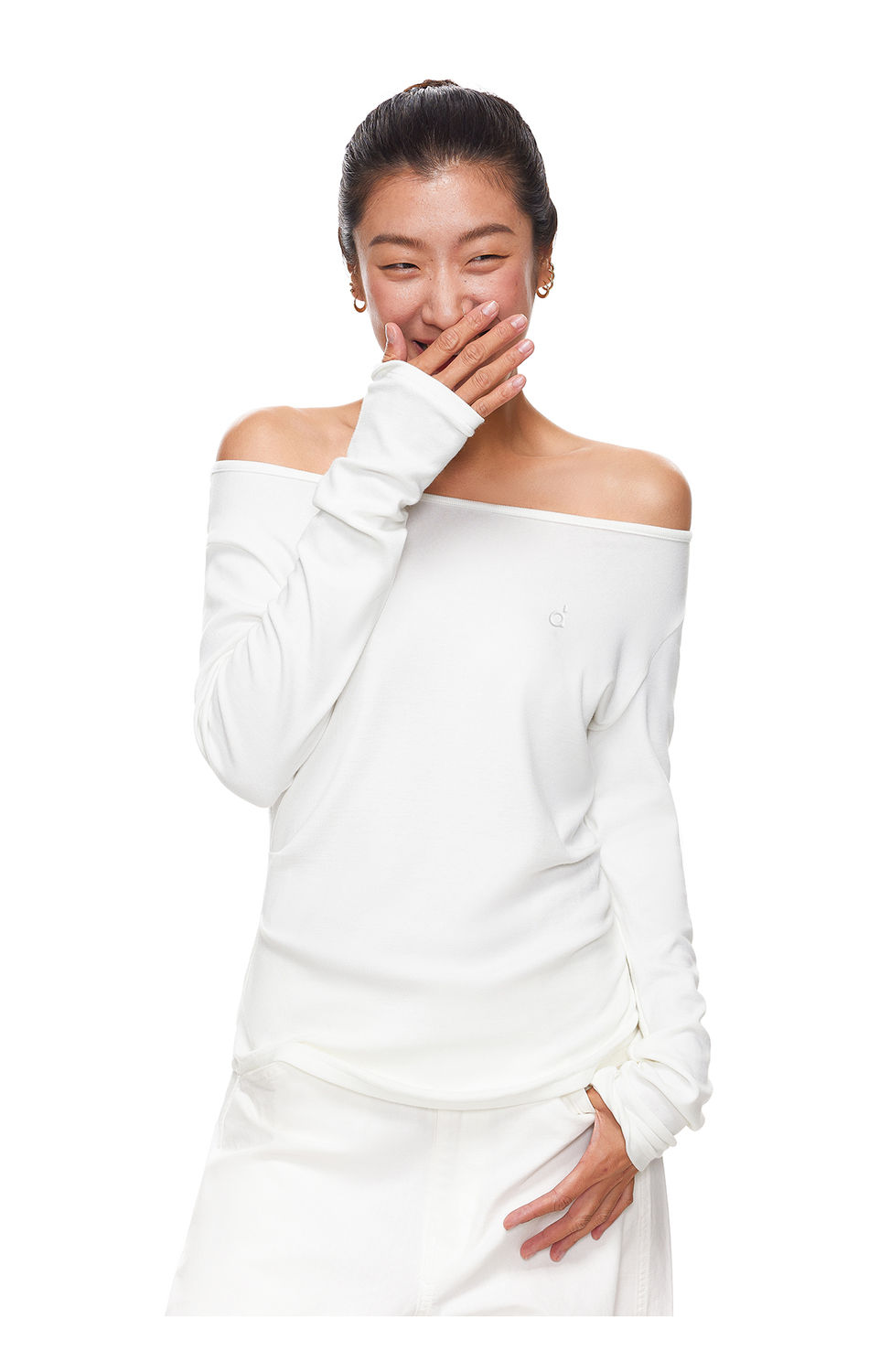 【178元任选3件】FDR旗舰店 蓄热保暖亲肤弹力斜肩长袖t恤女修身显瘦露肩运动上衣