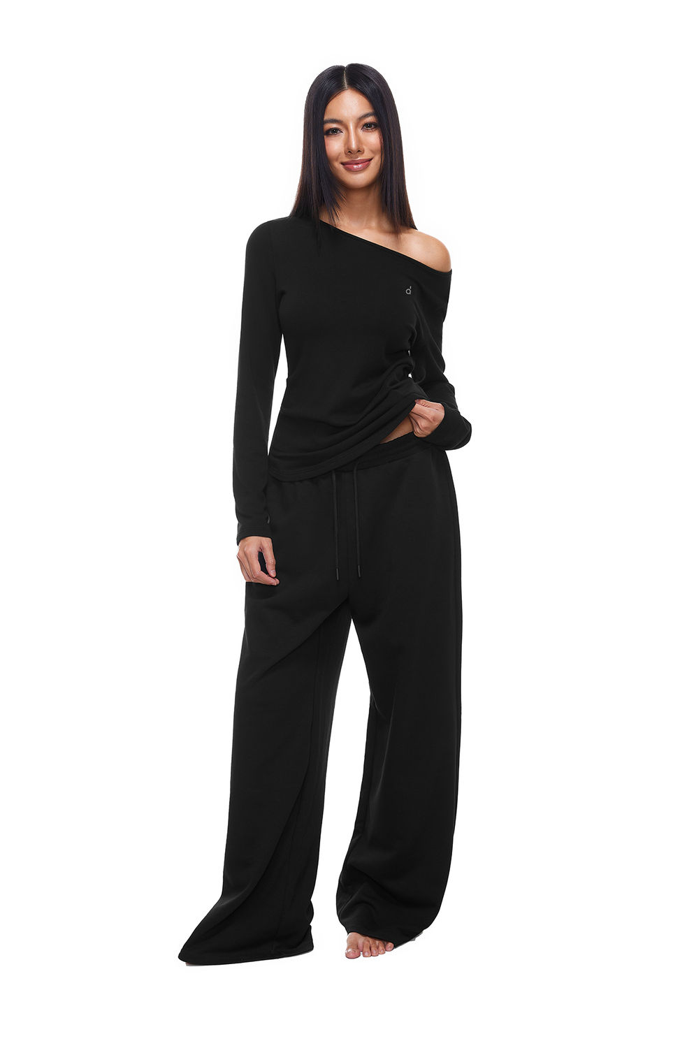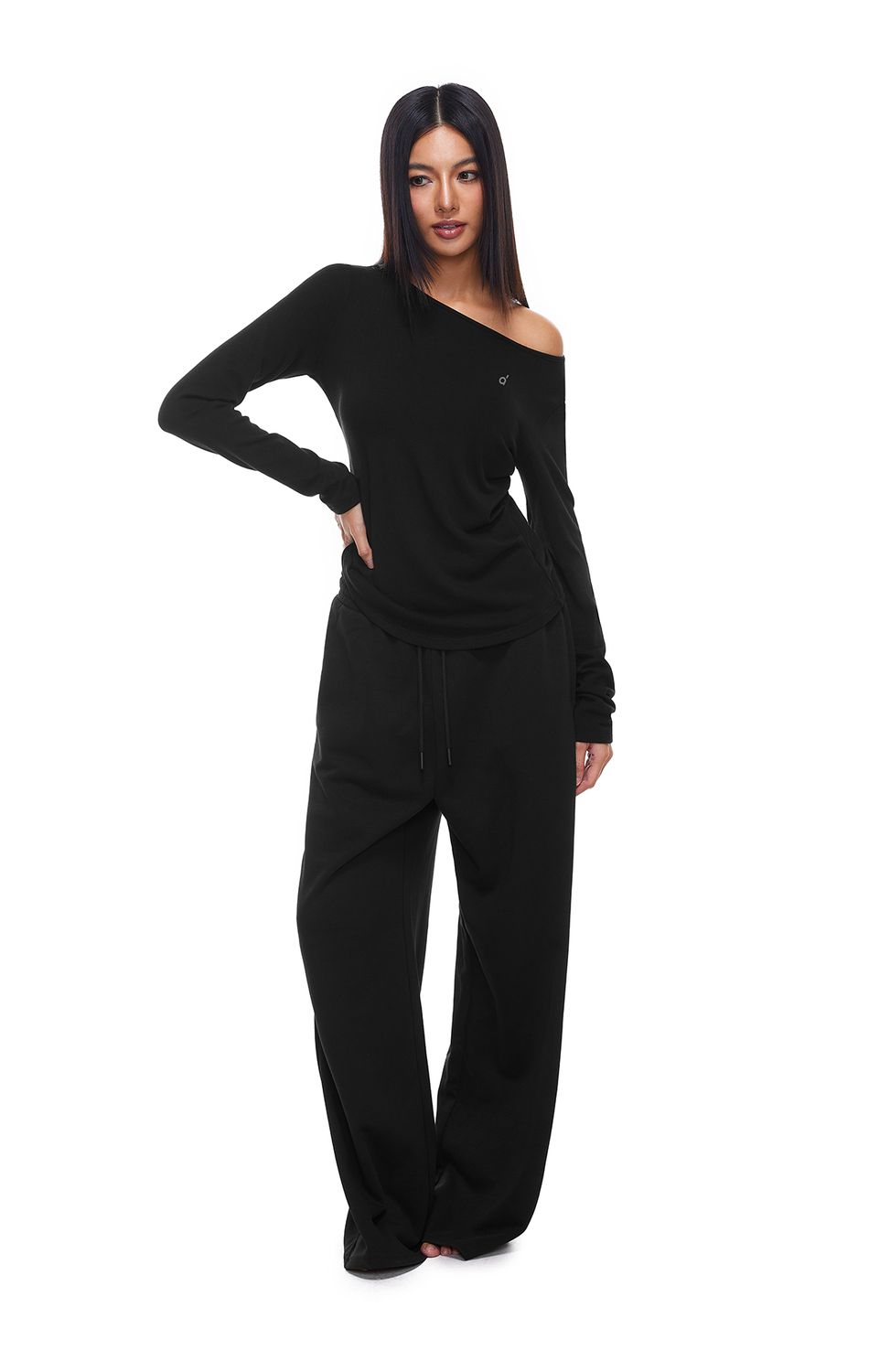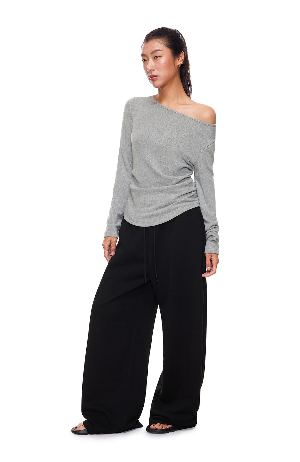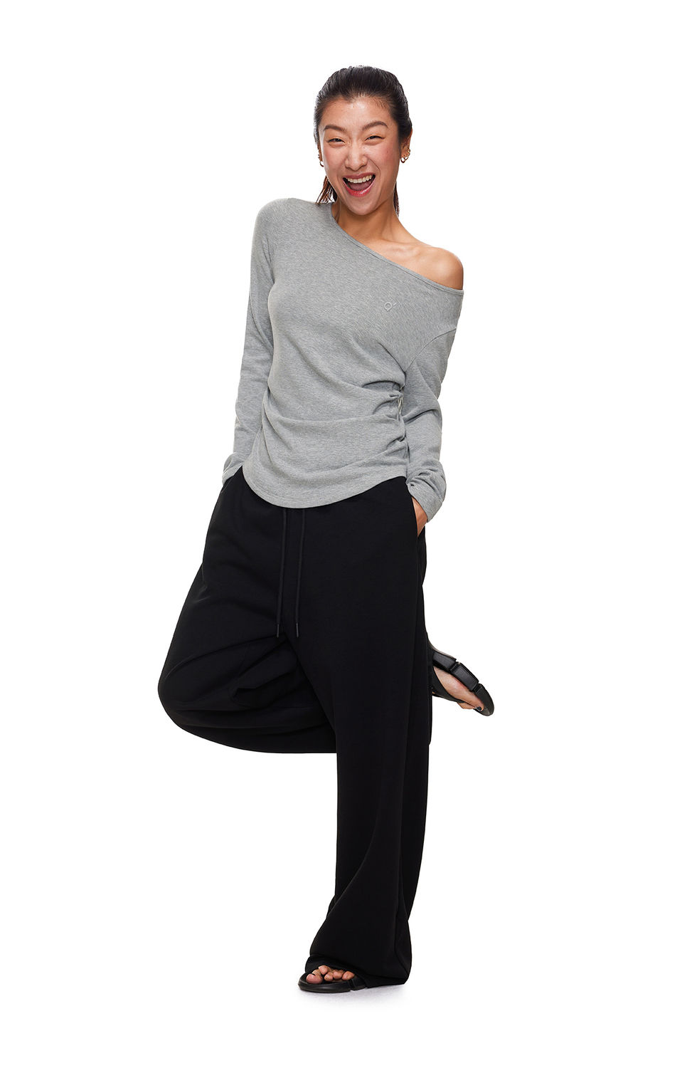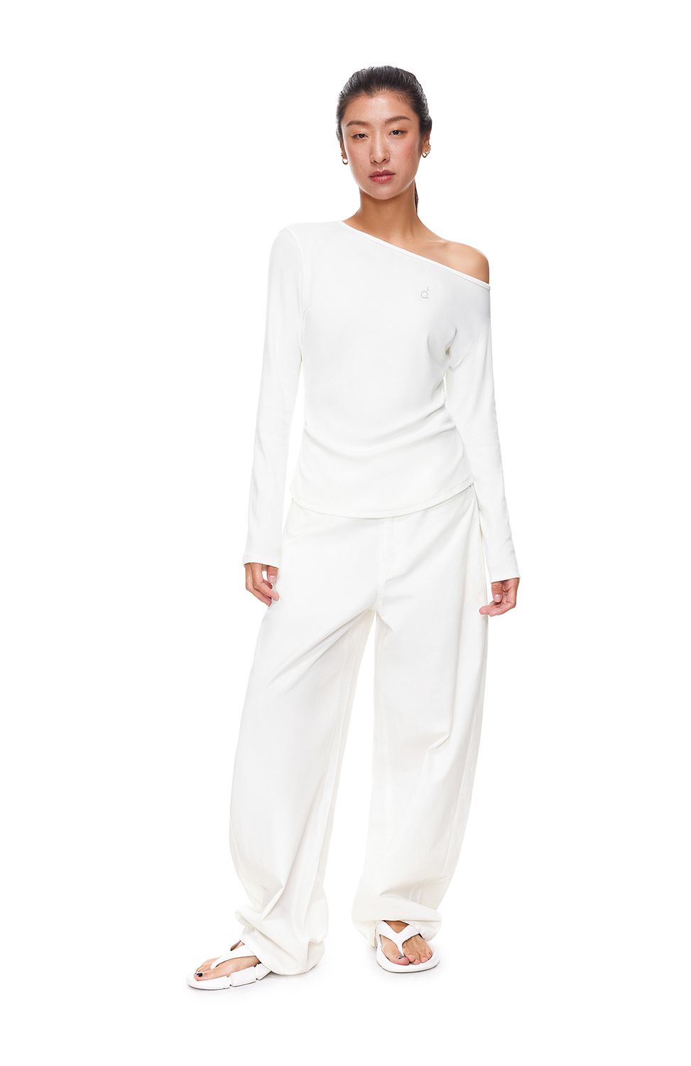 【178元任选3件】FDR旗舰店 蓄热保暖亲肤弹力斜肩长袖t恤女修身显瘦露肩运动上衣