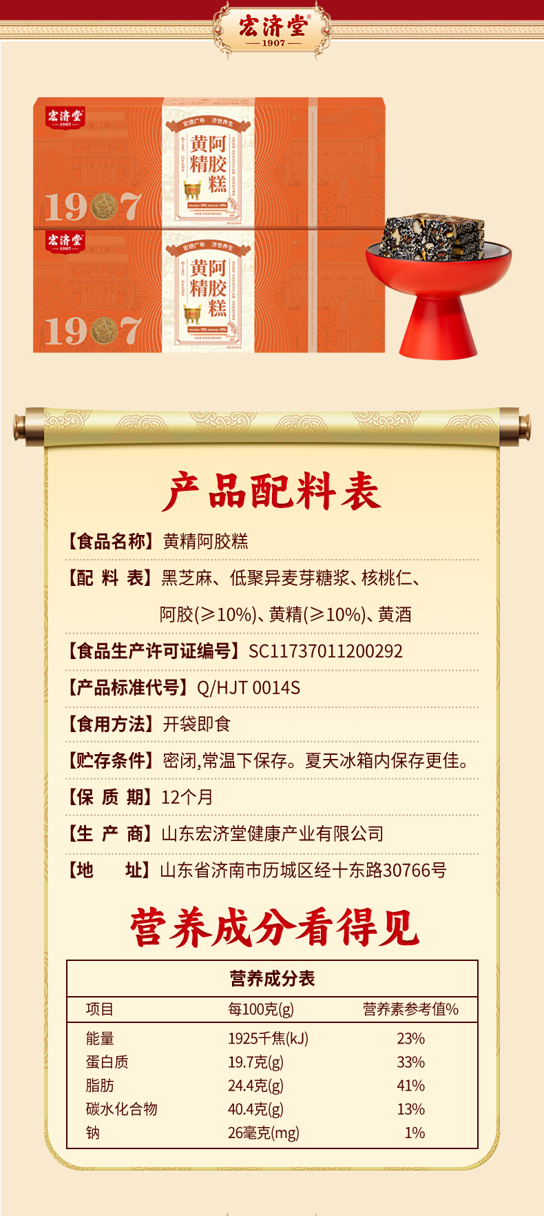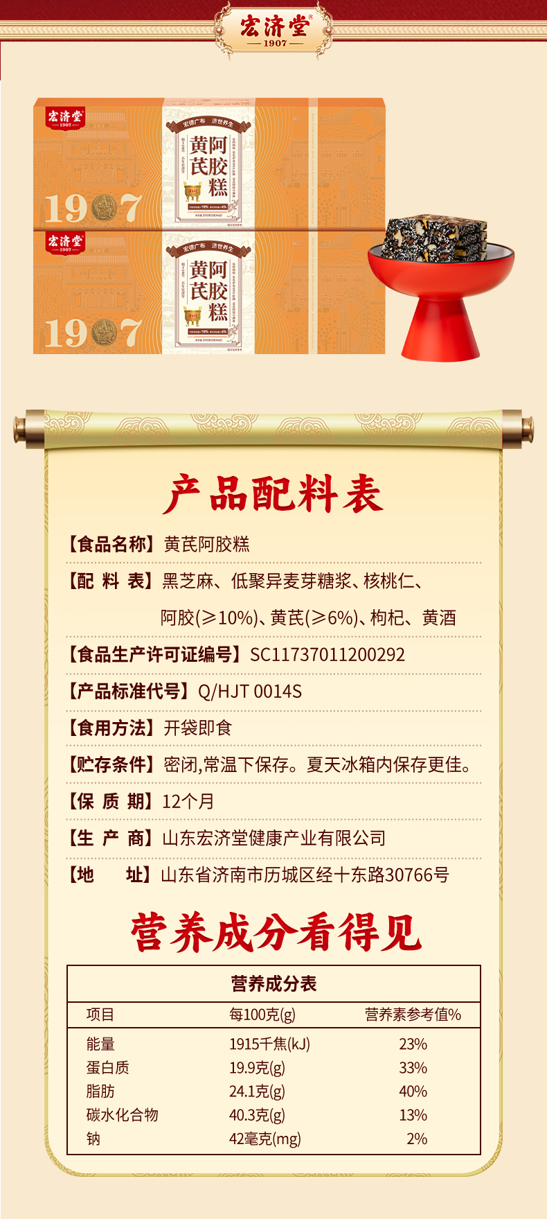 宏济堂黄芪阿胶糕/黄精阿胶糕 210克(5克*42片)/盒