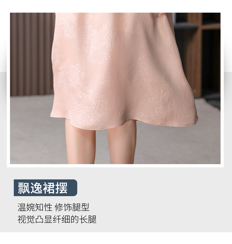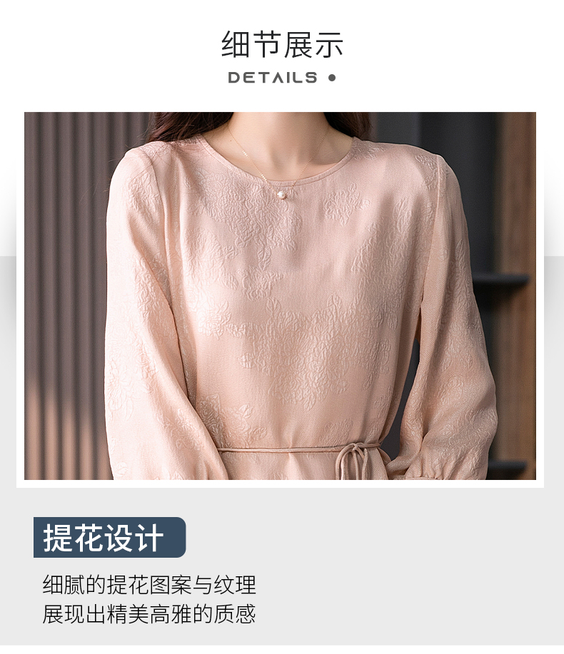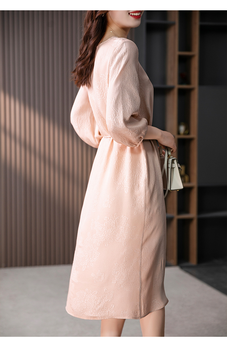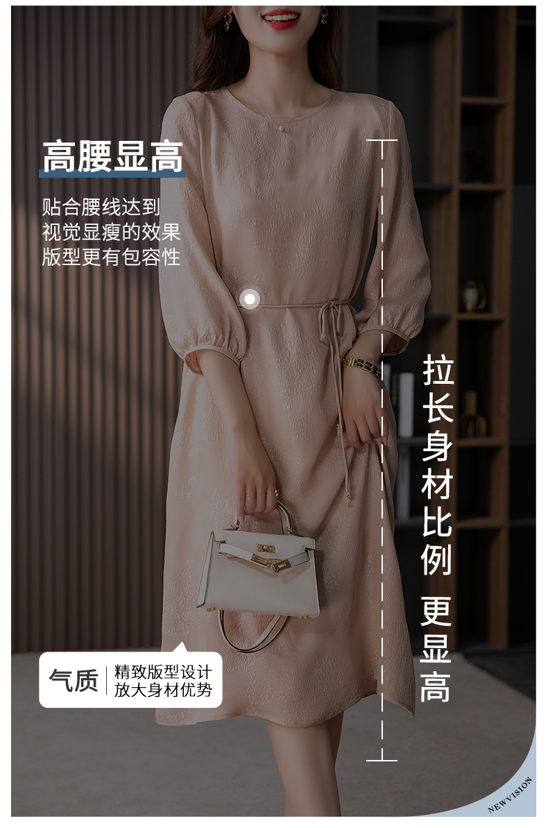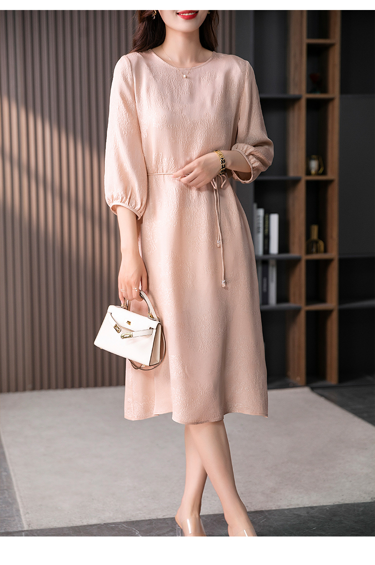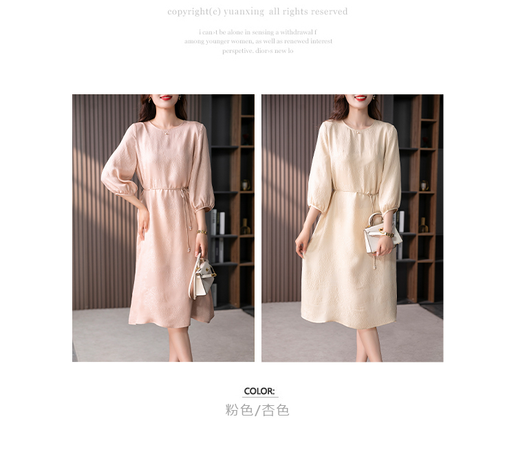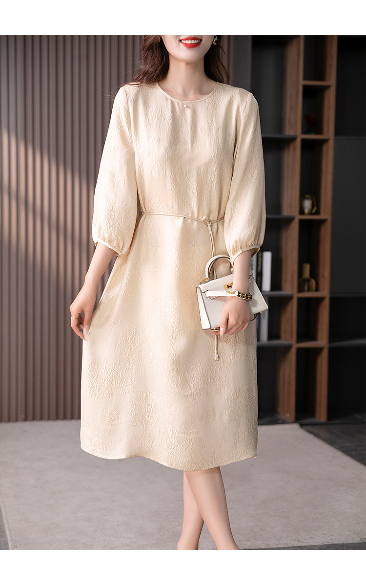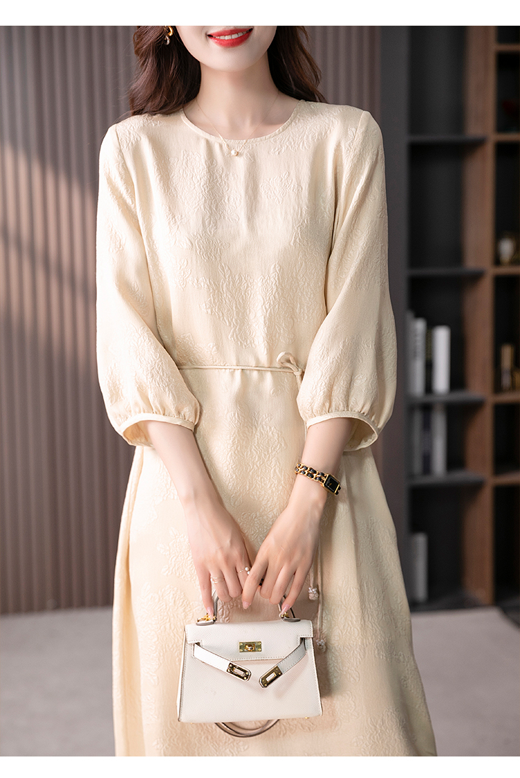 YX【定制10天】设计感提花真丝连衣裙女夏2023新款灯笼袖桑蚕丝系带中长裙子
