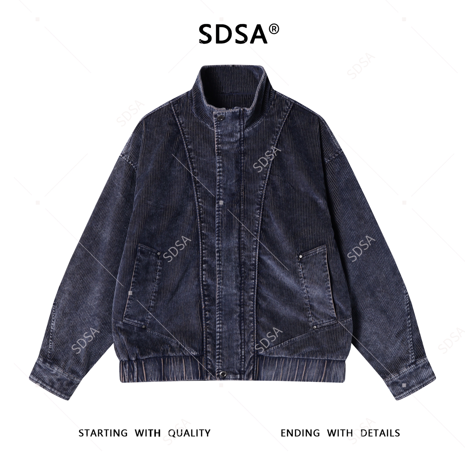 J59201SDSA男士秋冬新款痞帅男装做旧竖纹立领拉链夹克百搭时尚休闲外套