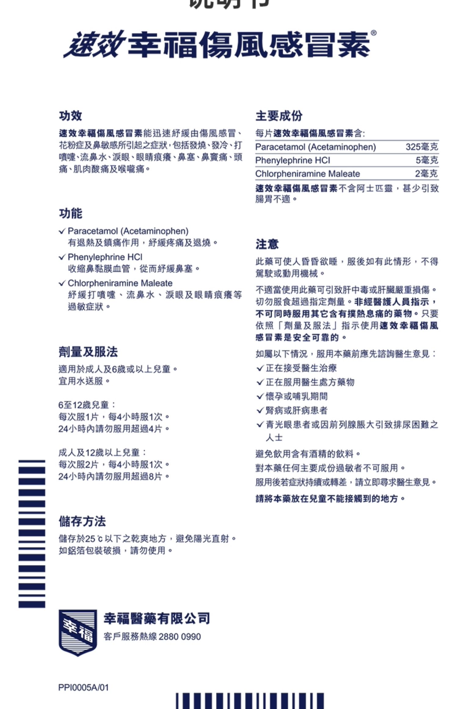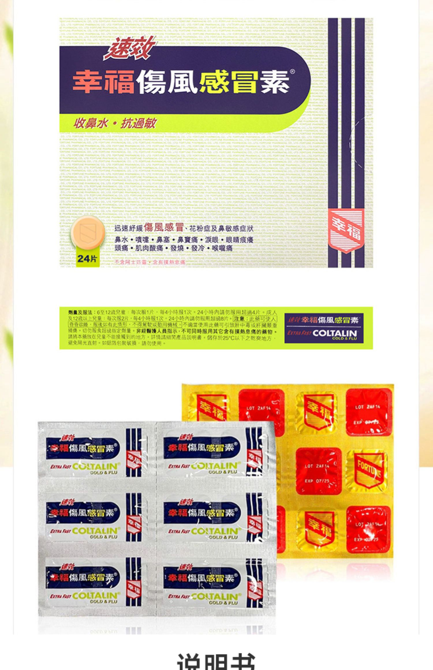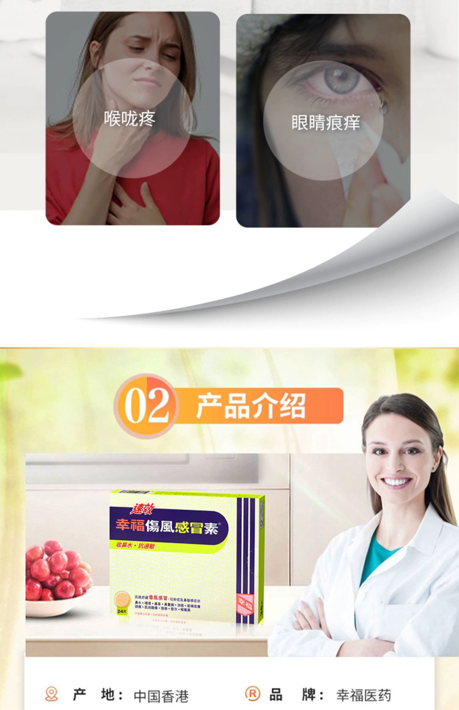 【香港直邮】正品幸福【速效】伤风感冒素(24片装)