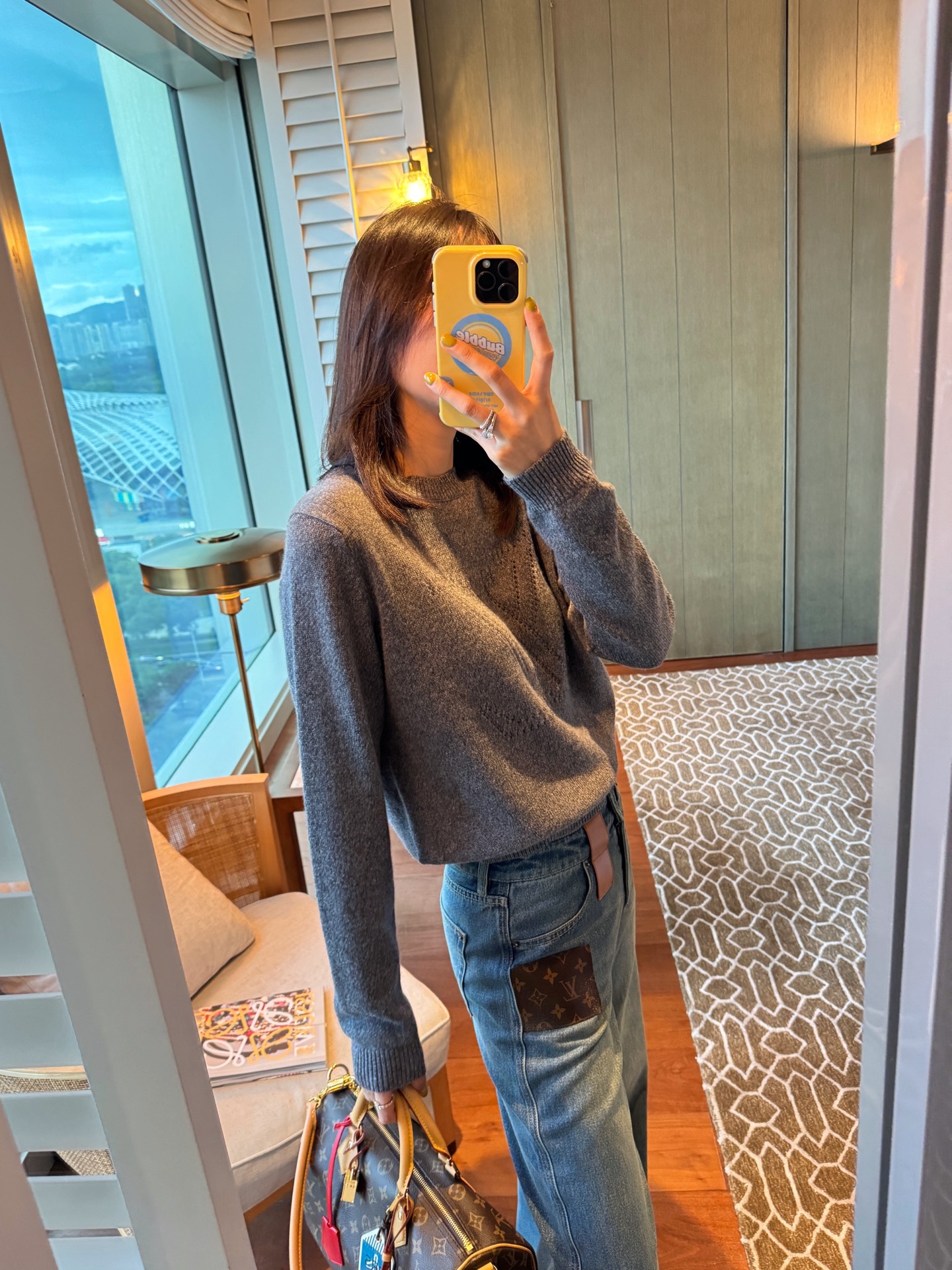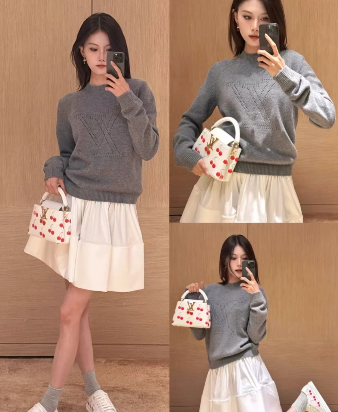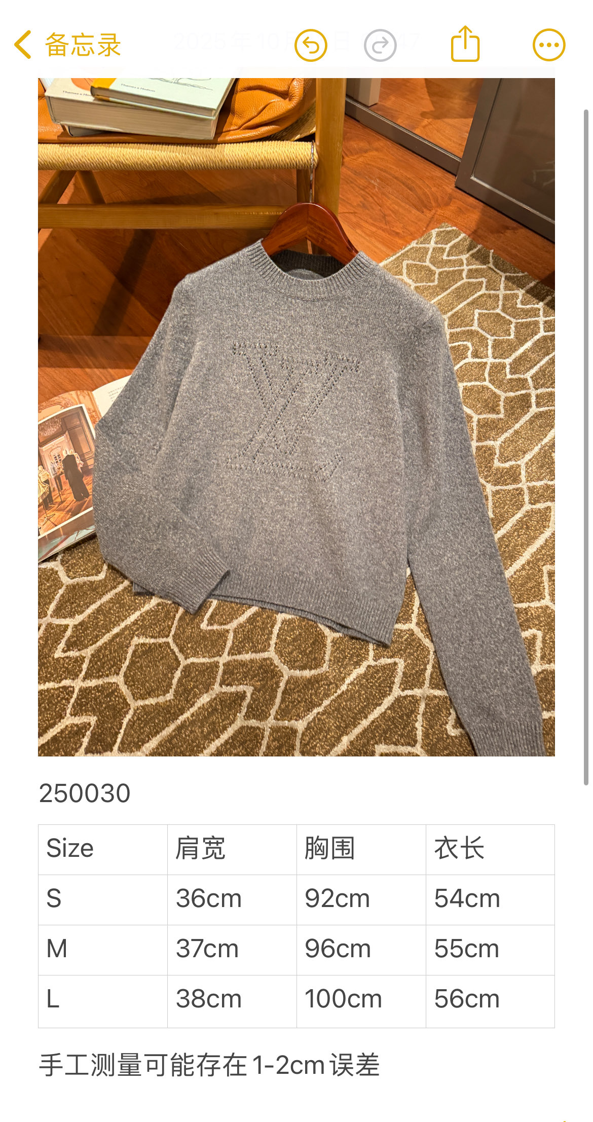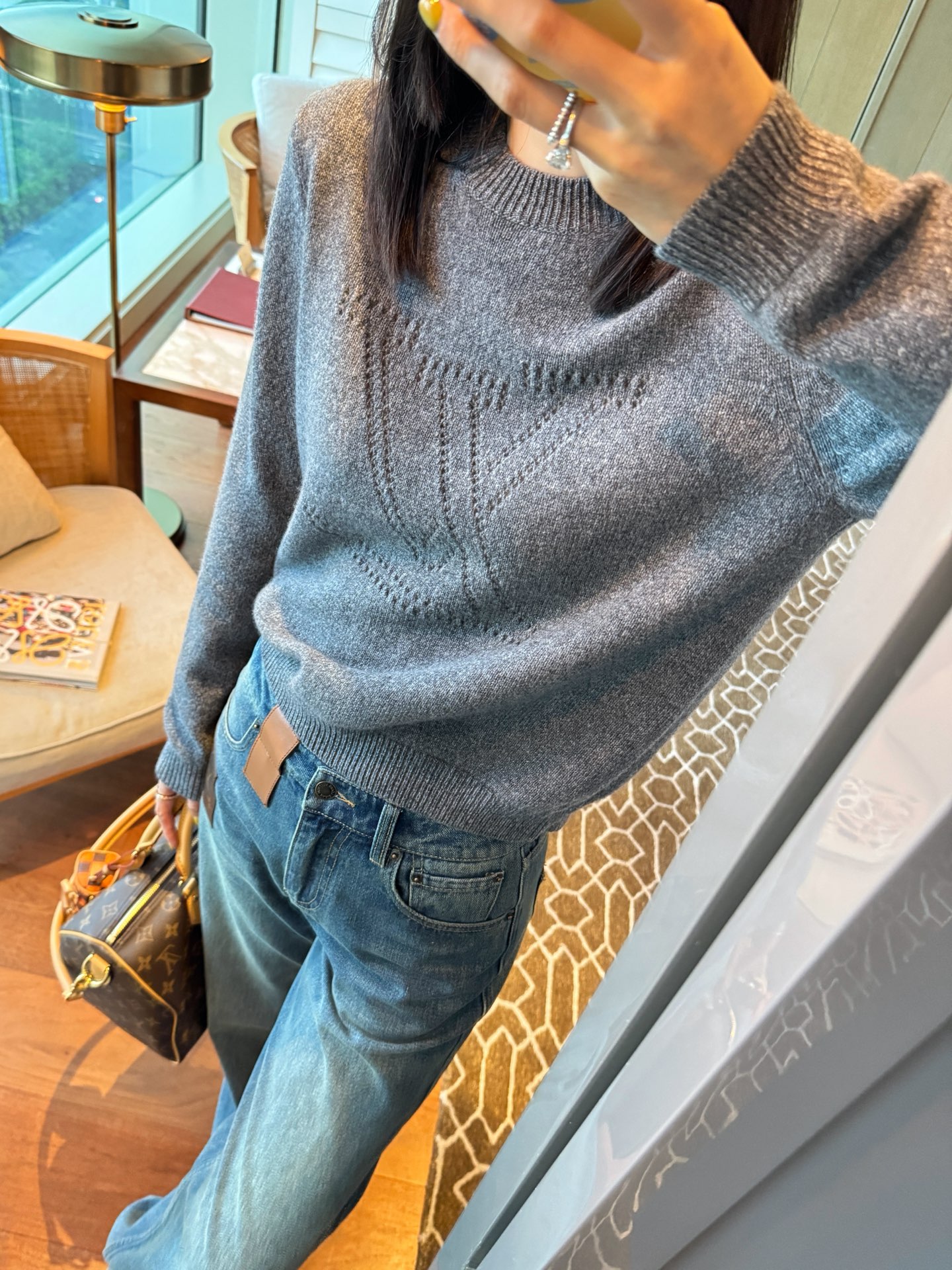 25年秋冬系列 🆕灰色针织毛衣, 胸前字母LOGO的镂空设计,令整个设计魅力更显,极简休闲,低调奢华日常风格💫 相当高级,厚实而柔软,穿起来完全不会扎,宽松版型,必入的宝藏单品,🉑码数SML