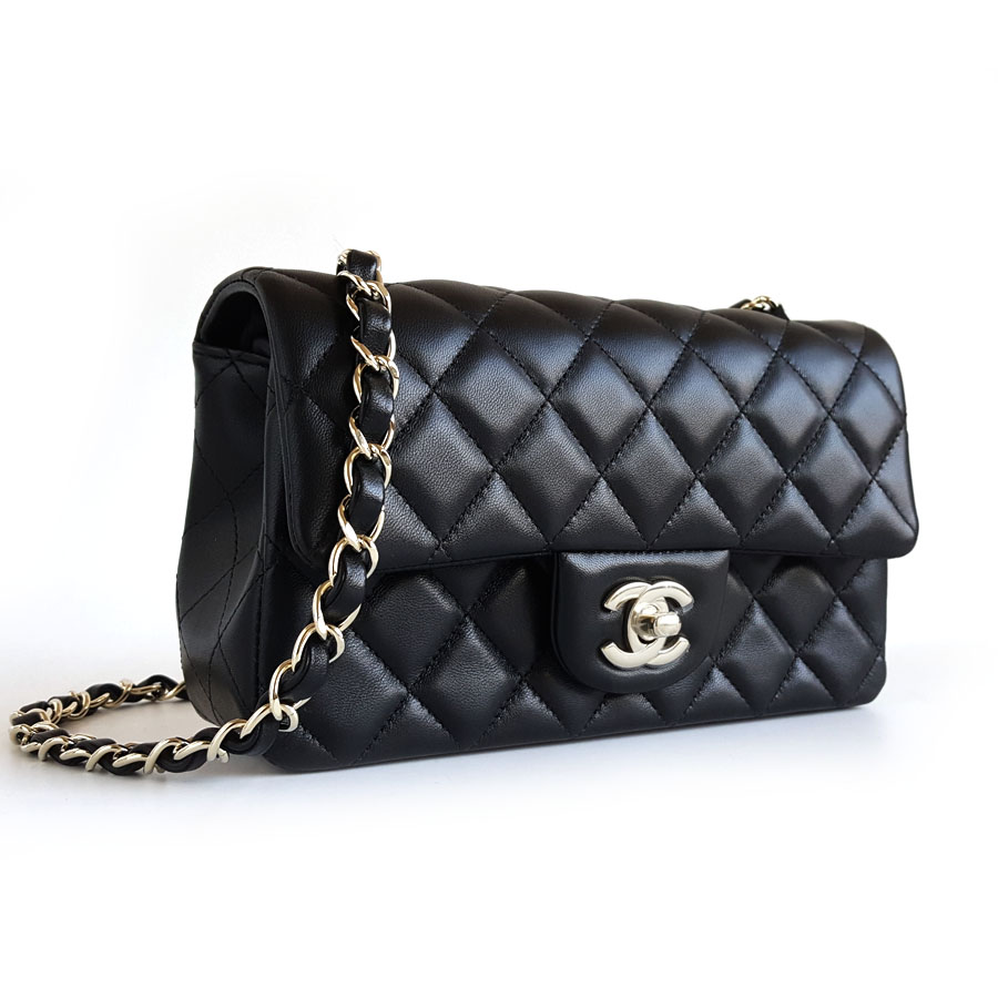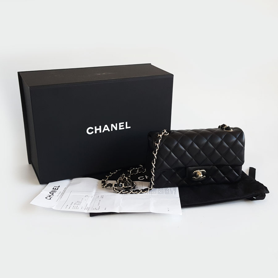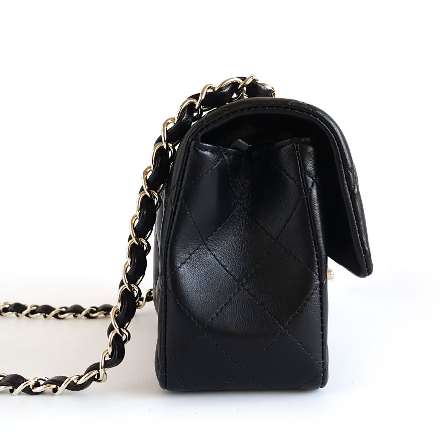 款式 | 黑色淡金扣大迷你mini羊皮CF链条包单肩包 |