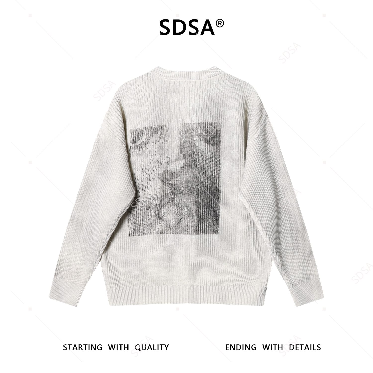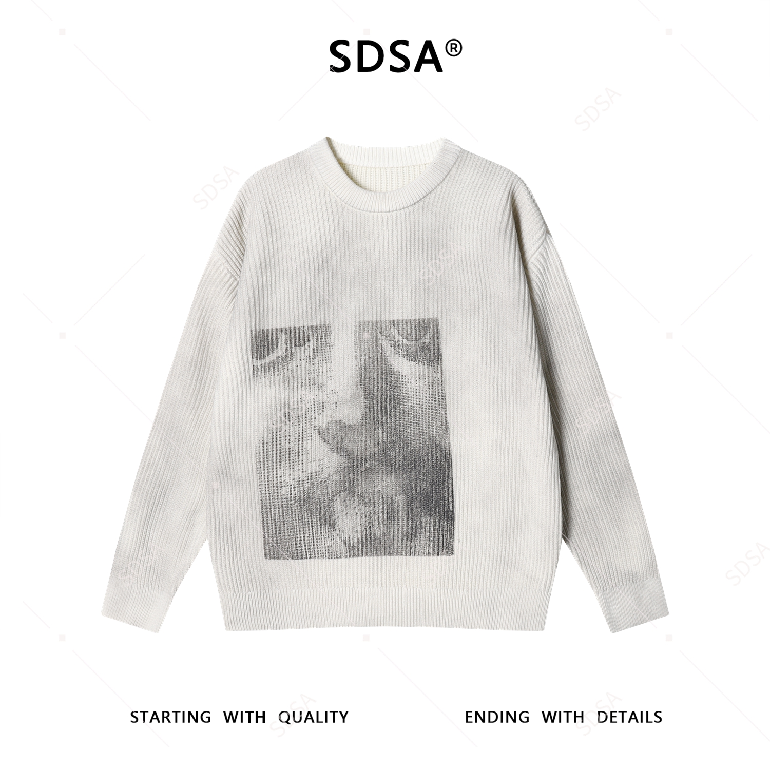 243065SDSA男士秋冬新款痞帅男装潮牌美式撞色印花圆领毛衣休闲简约上衣