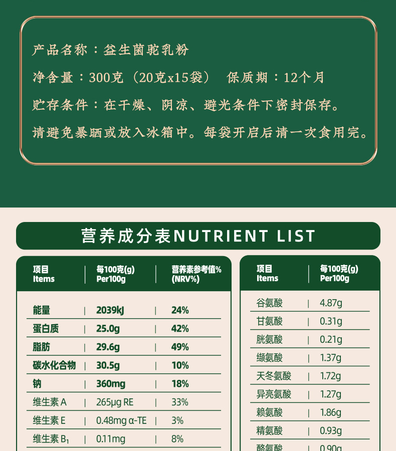 【益生菌驼奶粉】正广仁正宗新疆活性益生菌中老年成人驼乳粉