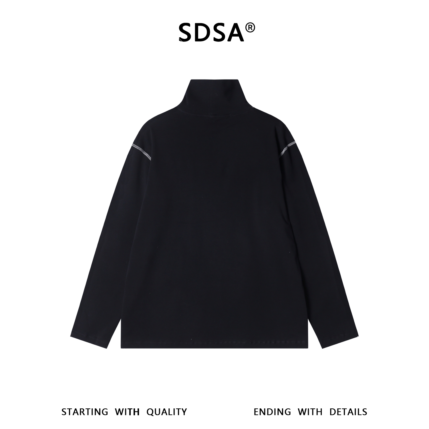 SDSA男士秋冬新款痞帅男装简约撞色缝线高领长袖T恤百搭打底衫