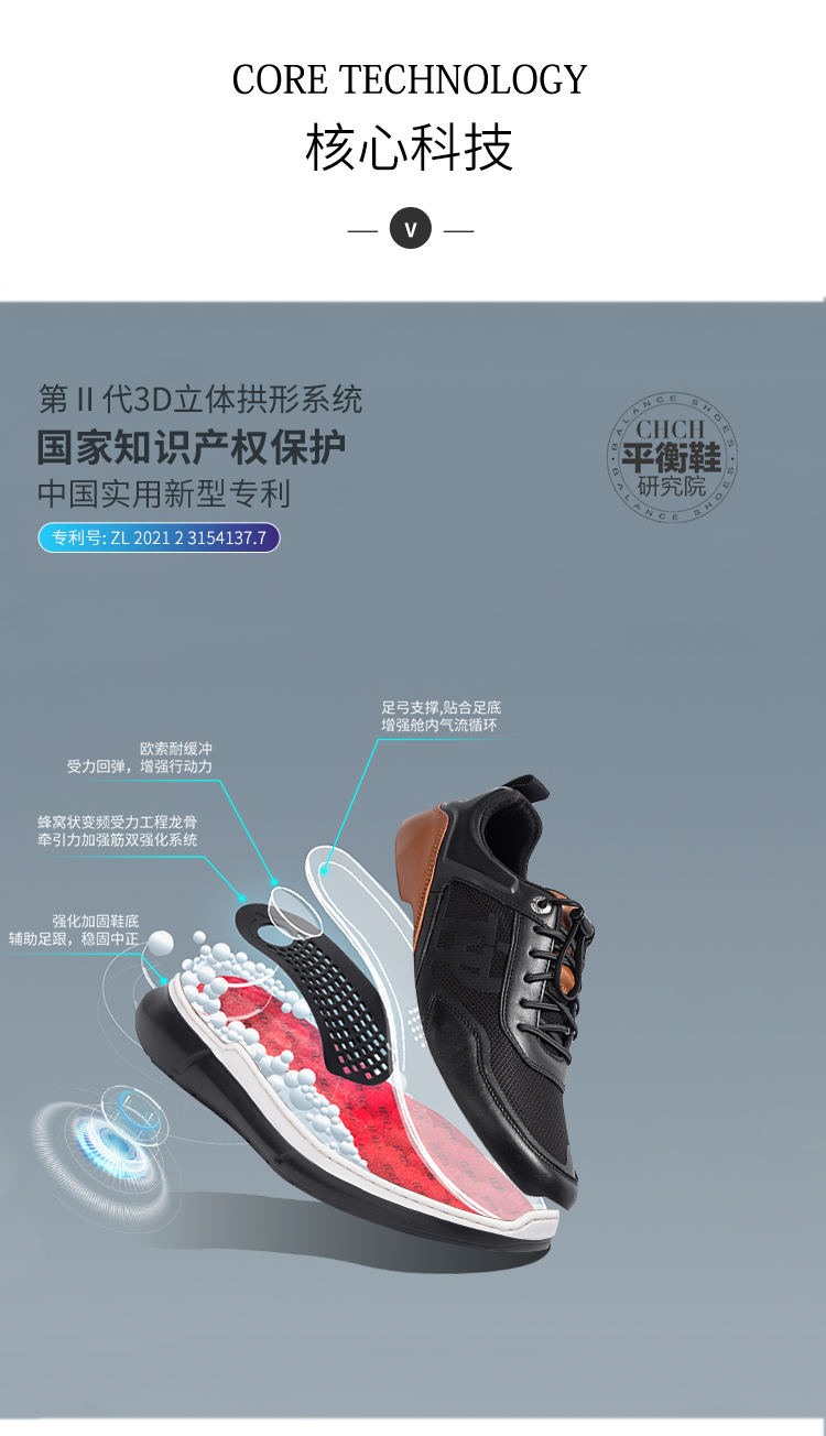 CHCH平衡鞋2025春夏新款伸缩带牛皮拼色男士休闲鞋CP1A2021