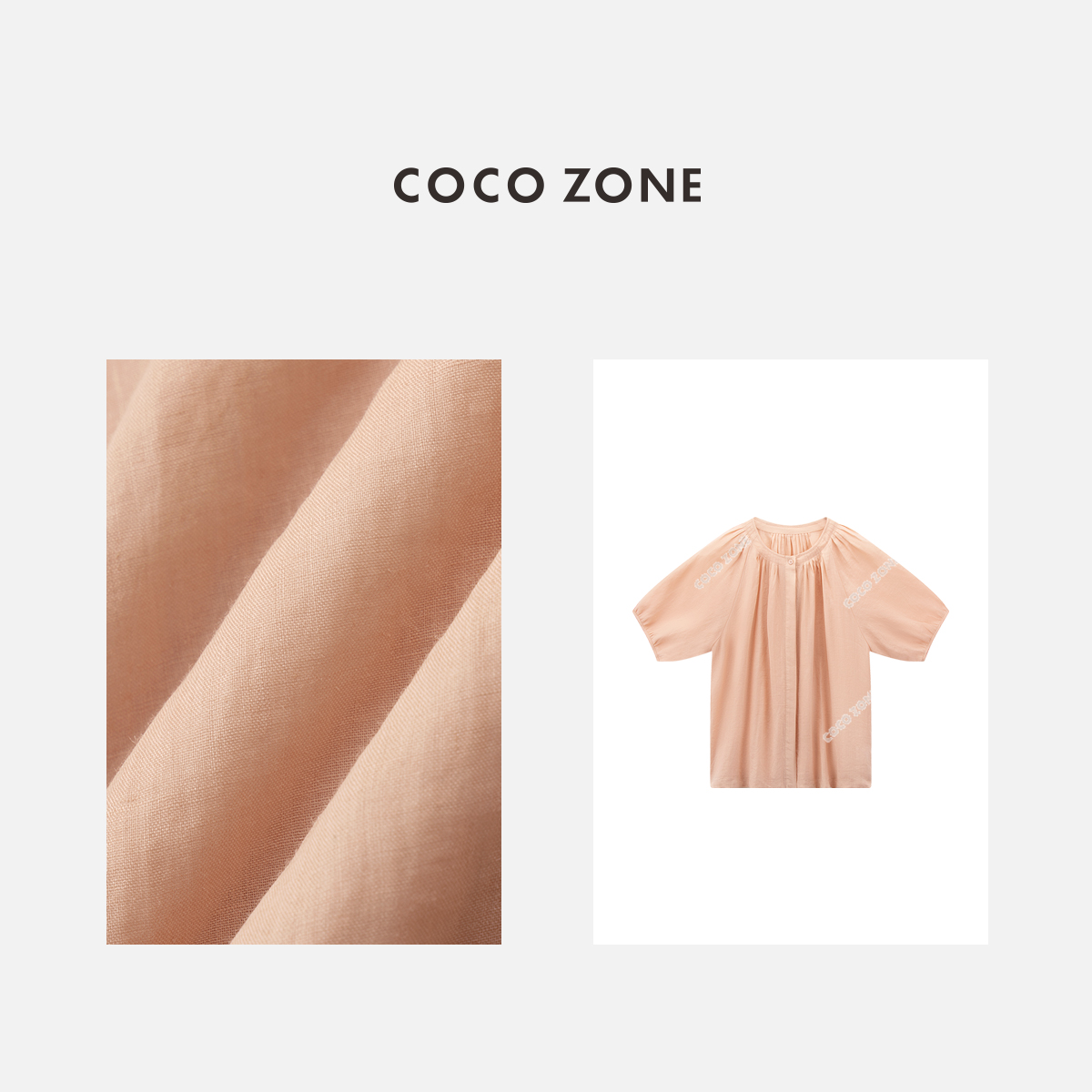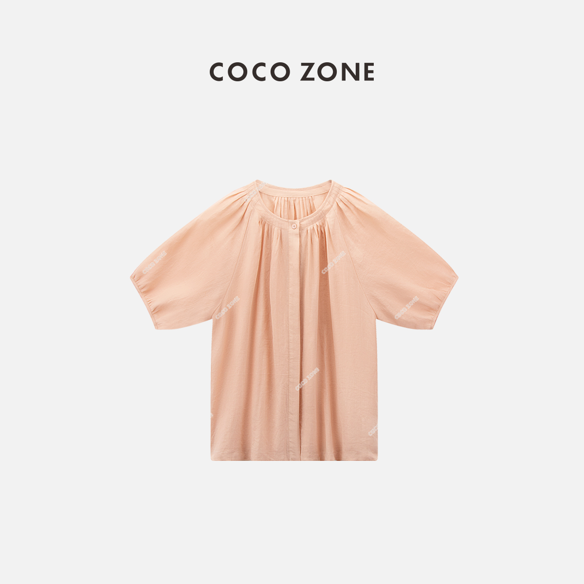 COCO ZONE夏季简约气质纽扣衬衫复古宽松纯色半袖上衣CC1B1183