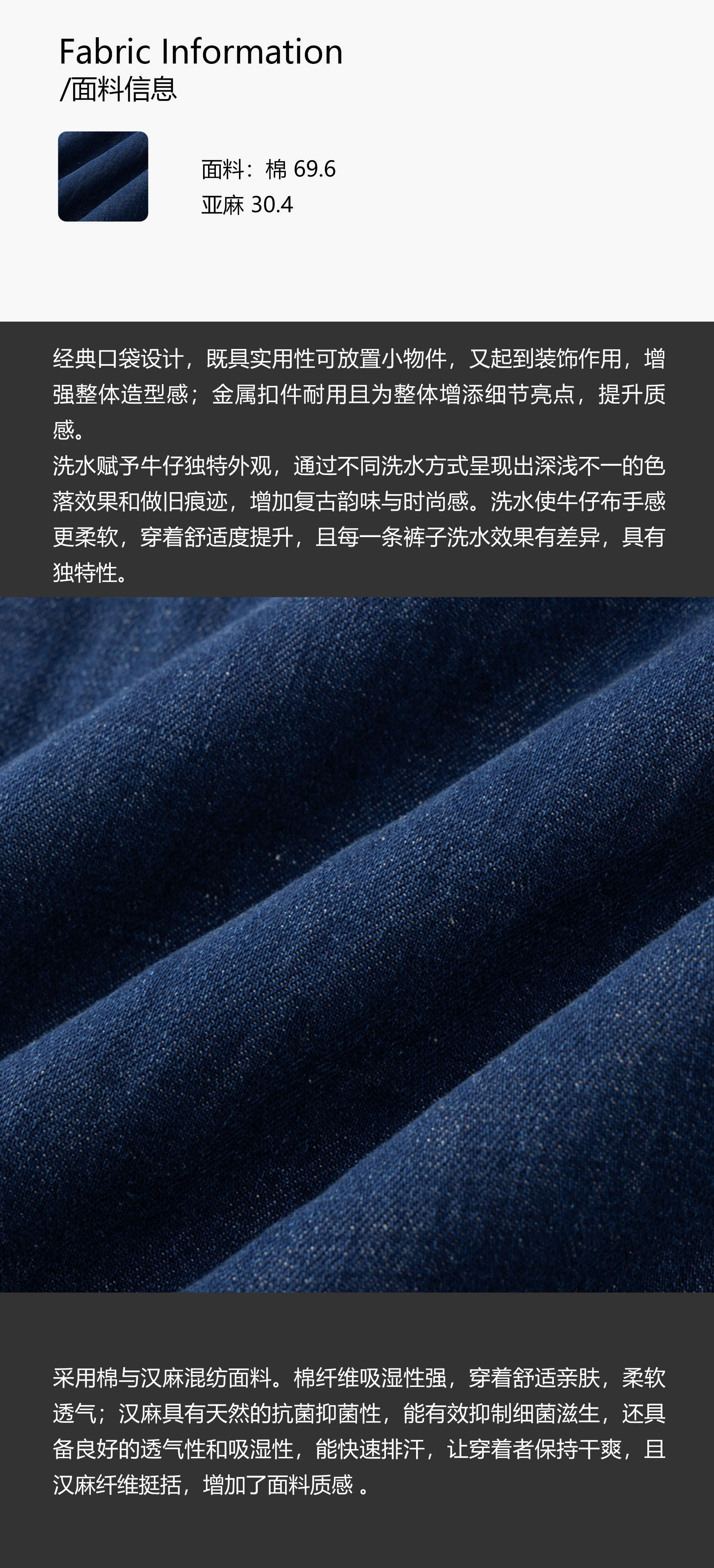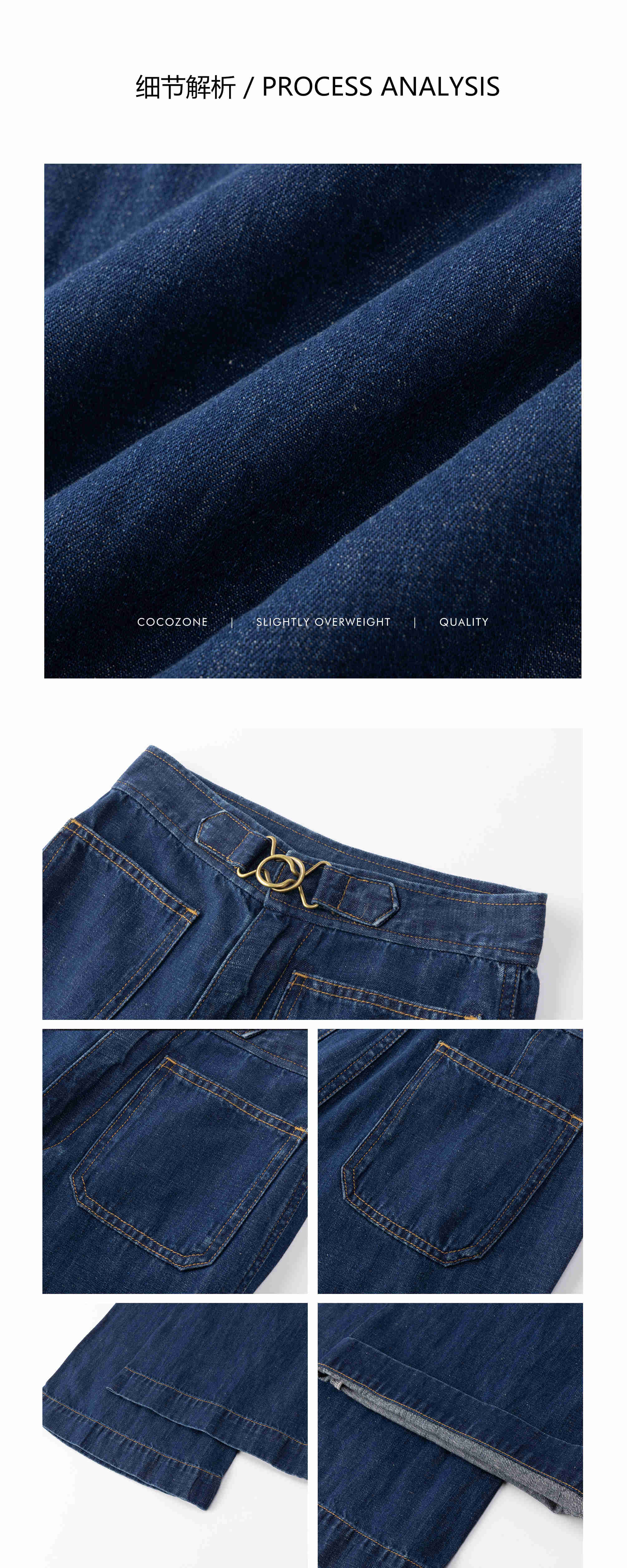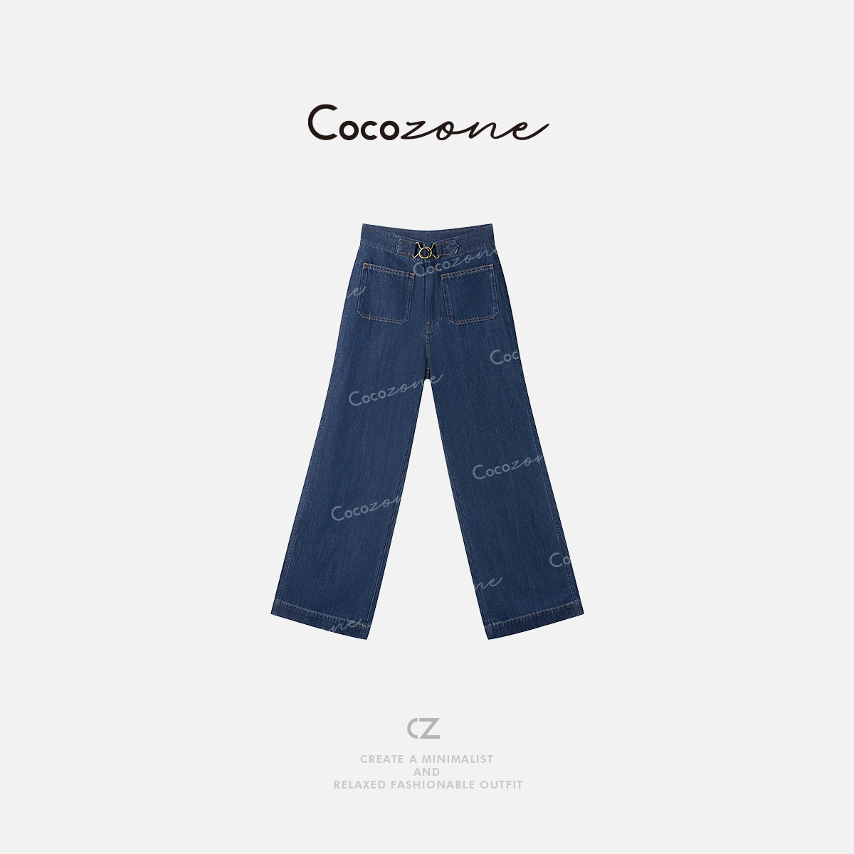 COCO ZONE刘一一【棉亚麻混纺】水洗金属扣直筒高腰牛仔裤CD1A0530