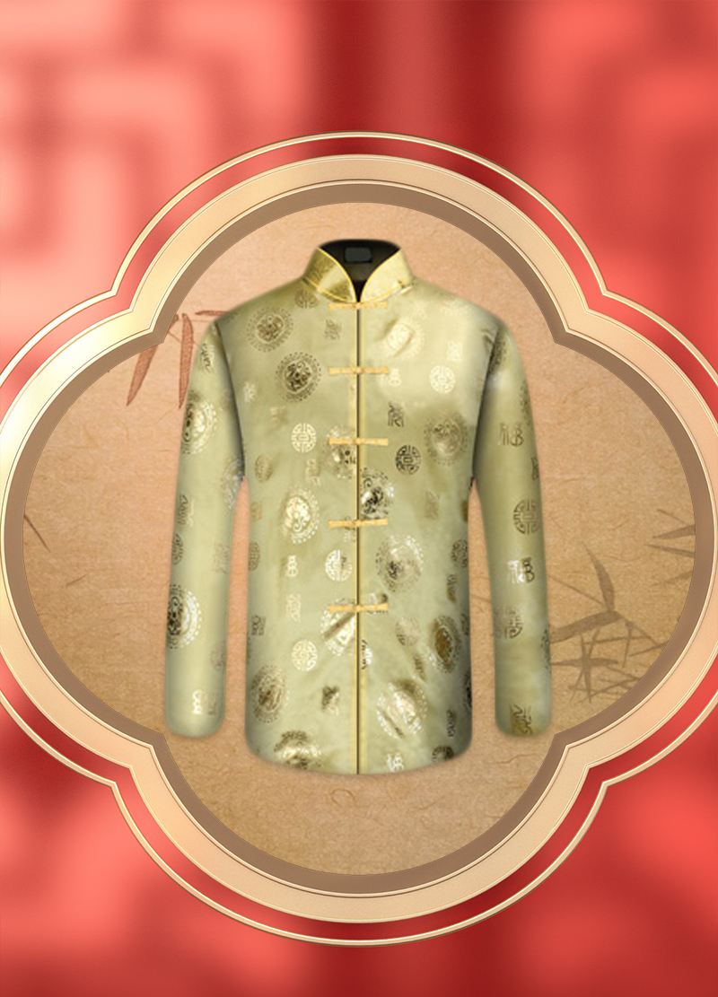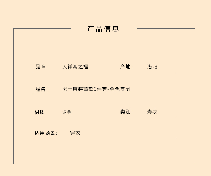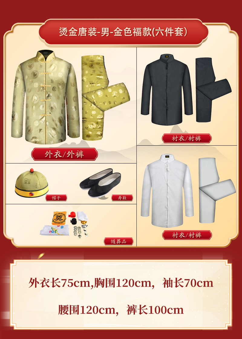 男士寿衣寿服烫金唐装“金色寿团”薄款寿衣六件套