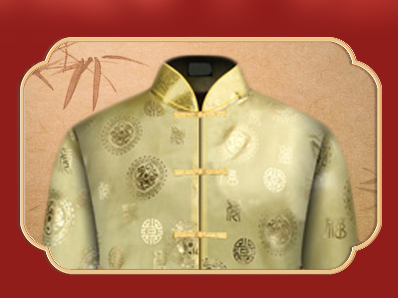 男士薄款织锦唐装金色福团6件套寿衣寿服套装