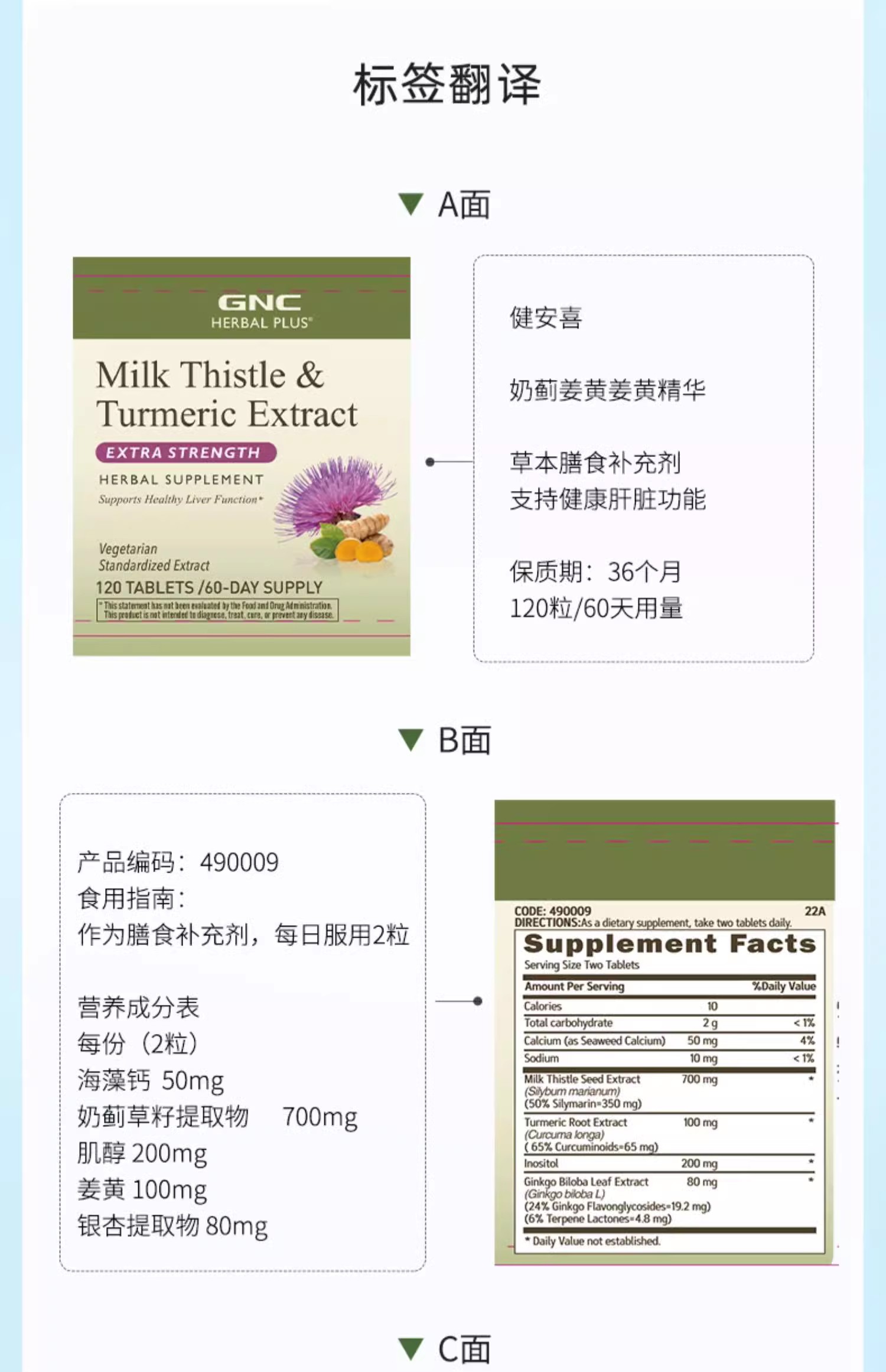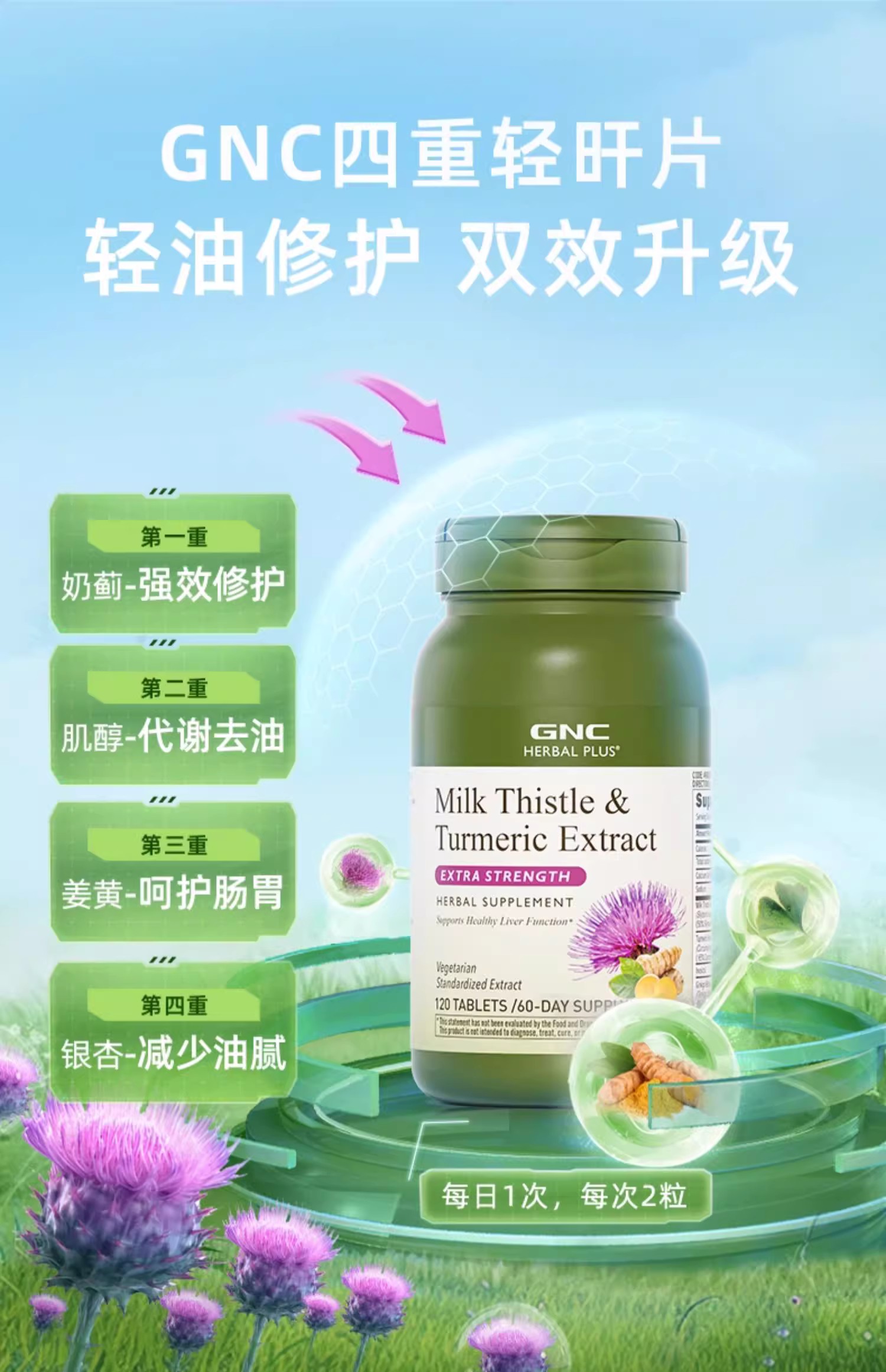 保税GNC健安喜四重奶蓟精华姜黄银杏水飞蓟肌醇加班熬夜喝酒应酬支持肝脏健康