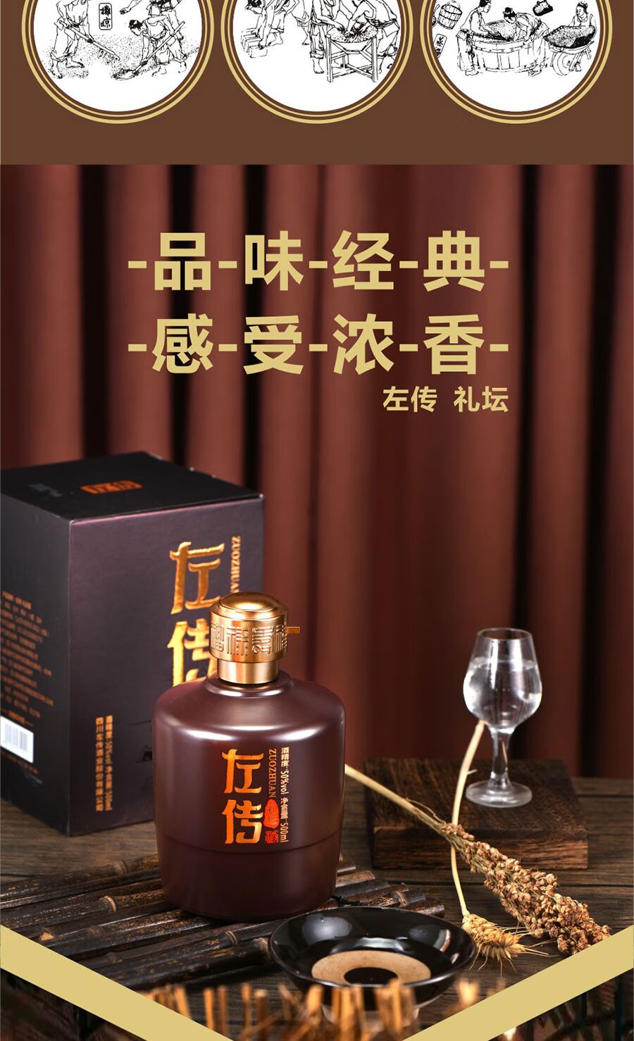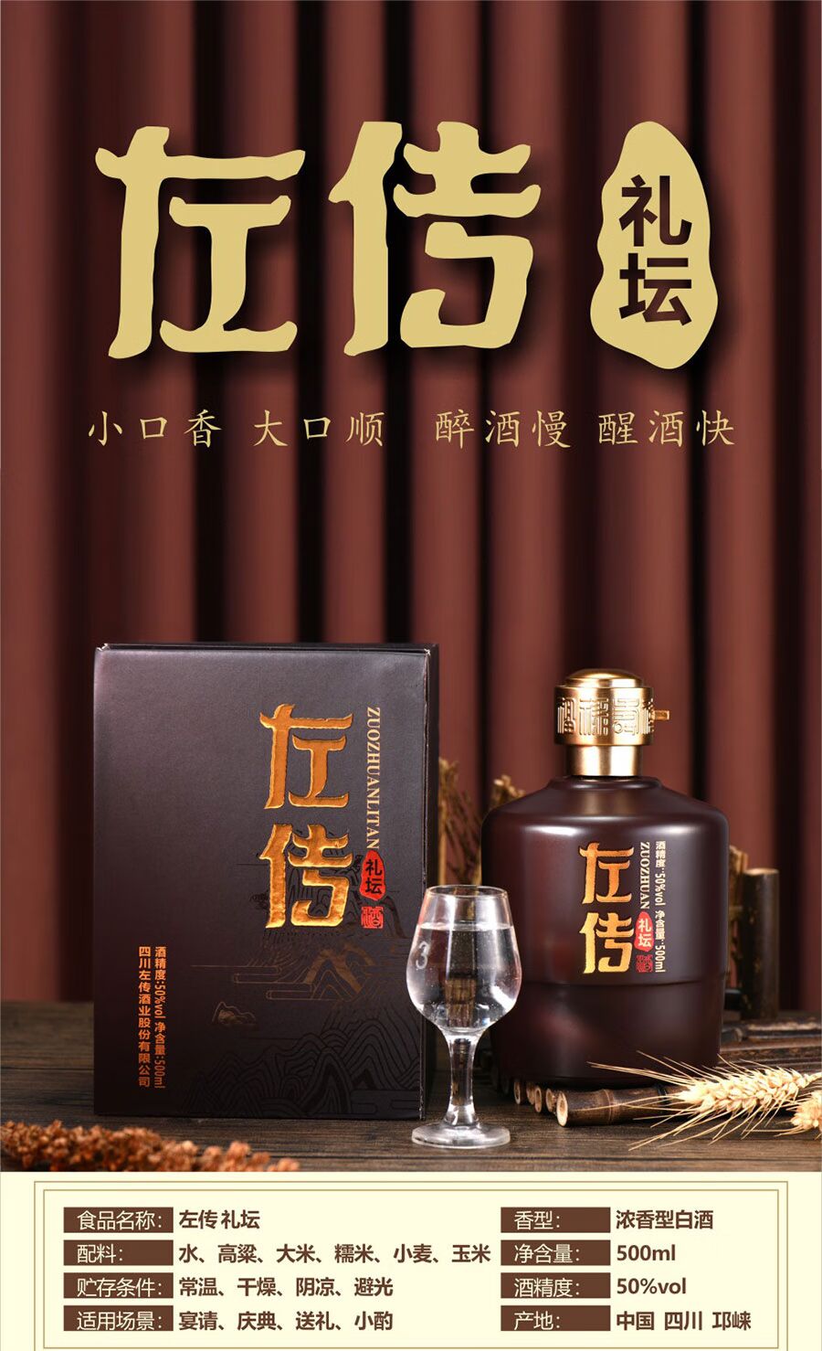 左传 礼坛 50度浓香型白酒纯粮食 固态发酵 四川 500ml*6瓶整箱