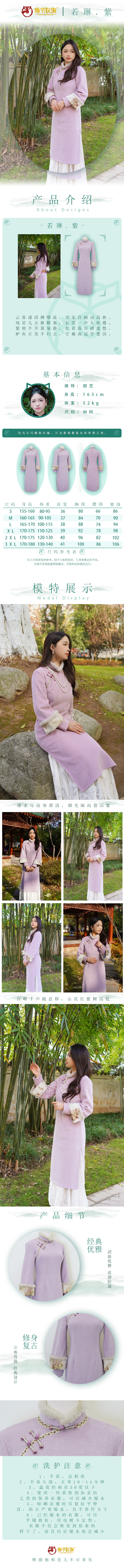 【紫定能行】新中式国风旗袍改良秋冬保暖加厚连衣裙年轻款毛边紫色叠袖设计感