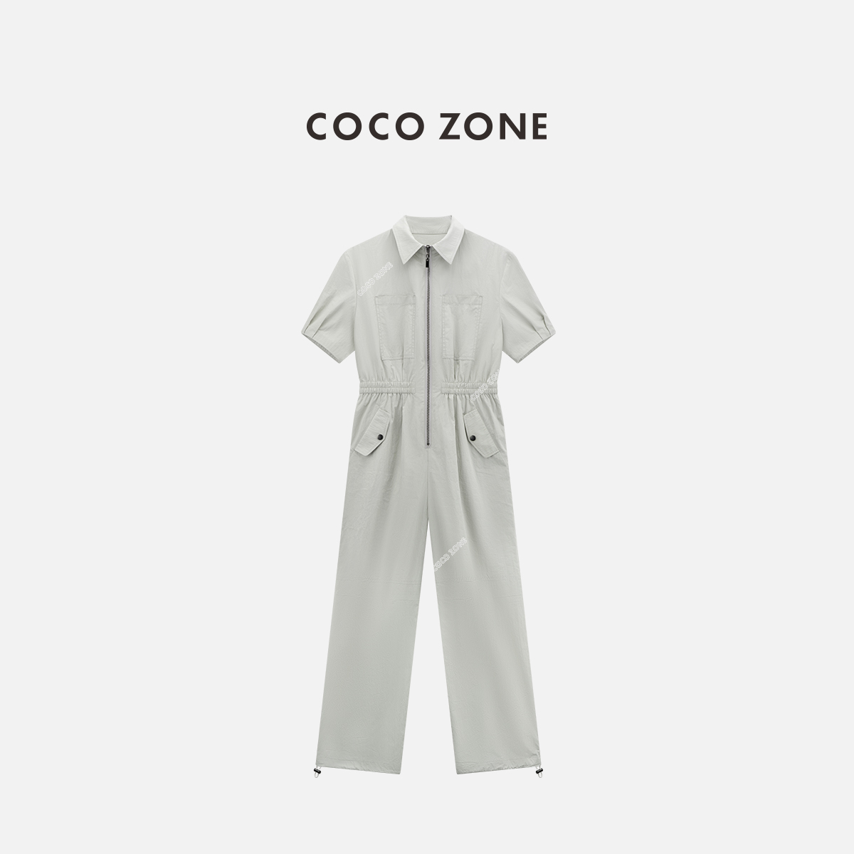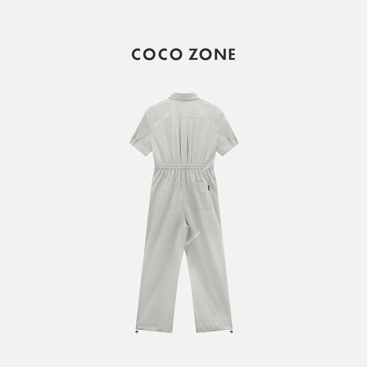 COCO ZONE 纯色翻领连衣裤百搭拉链短袖连体衣CC2B1133