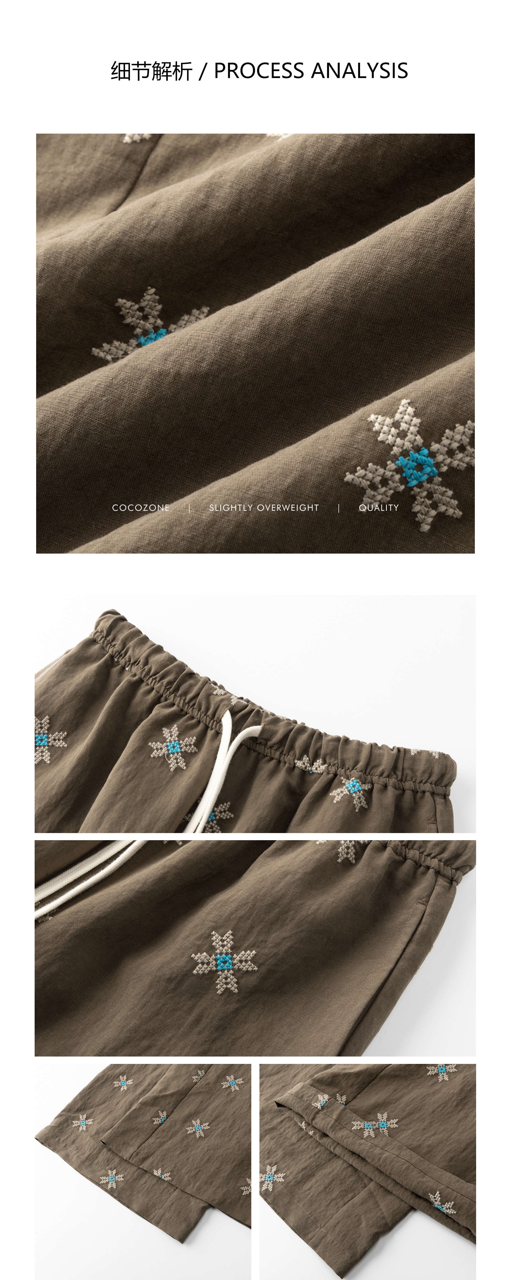 COCO ZONE 刘一一 【莱赛尔麻混纺】通勤刺绣阔腿休闲裤CD2A0772