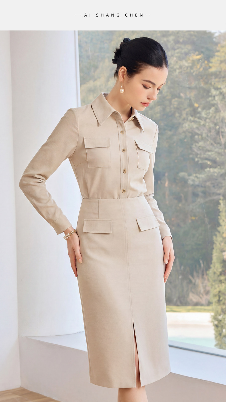 艾尚臣衬衫半裙两件套女春季轻熟通勤时尚套装2026新款长袖职业装