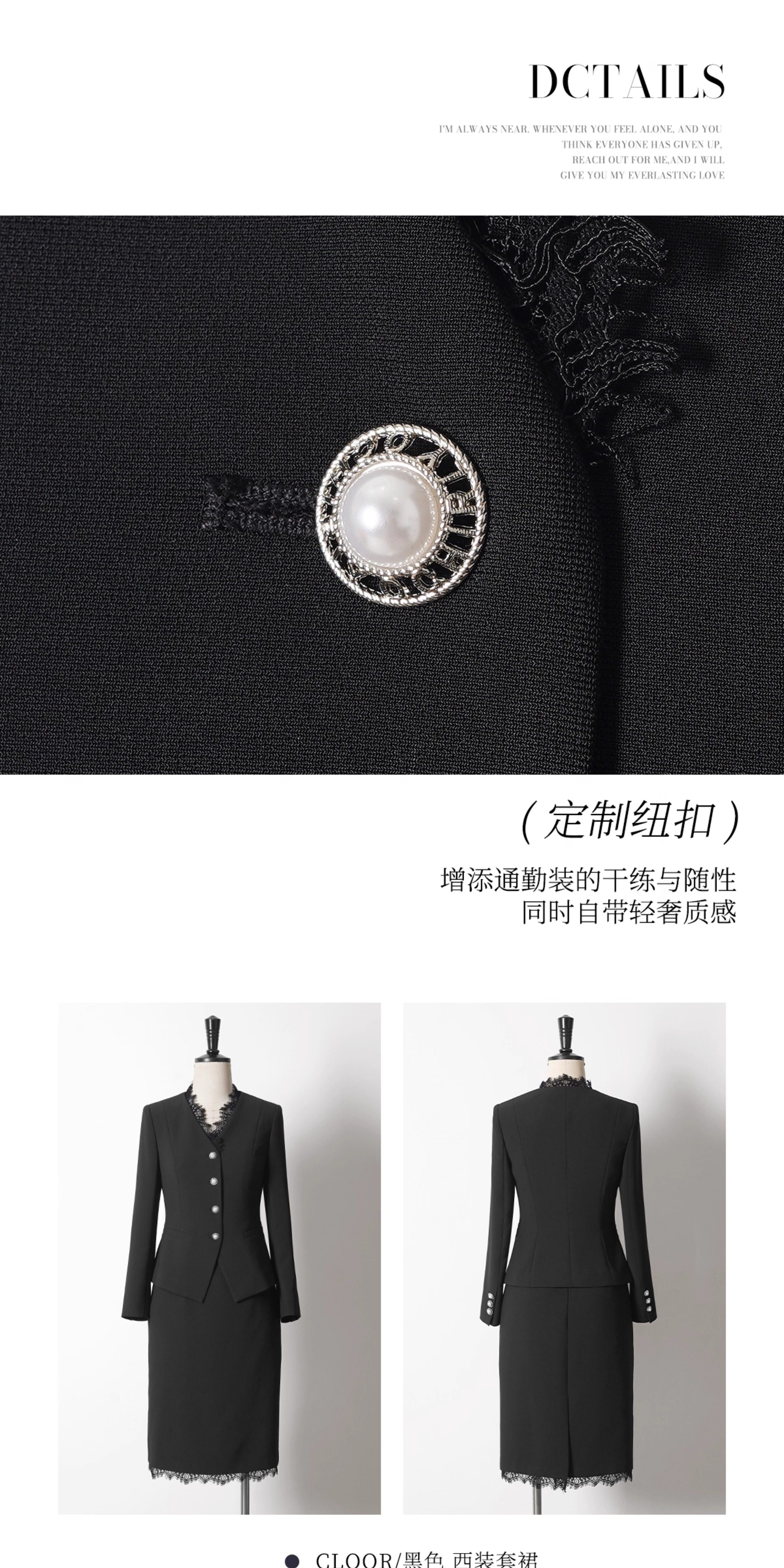 艾尚臣黑色西装套装秋冬职场干练气质女装正式场合职业套裙两件套