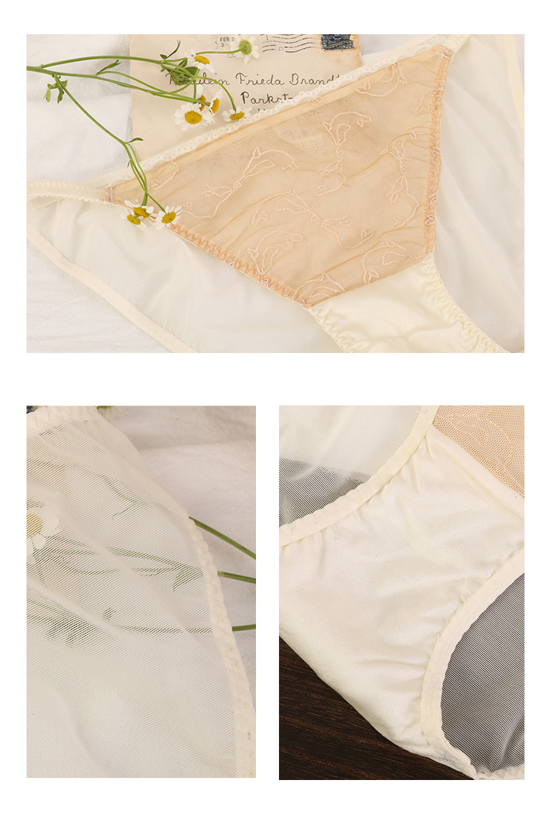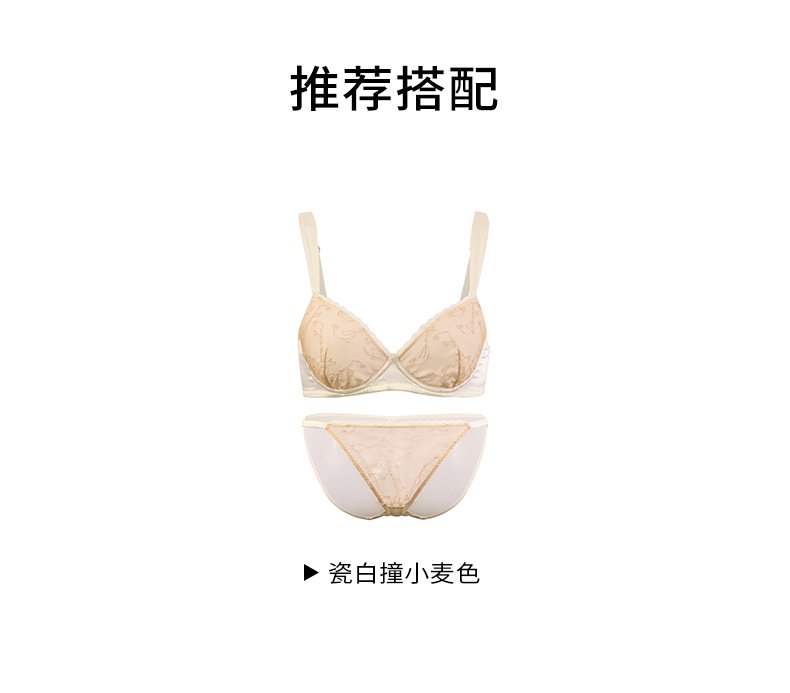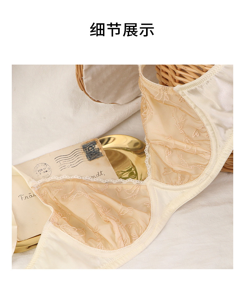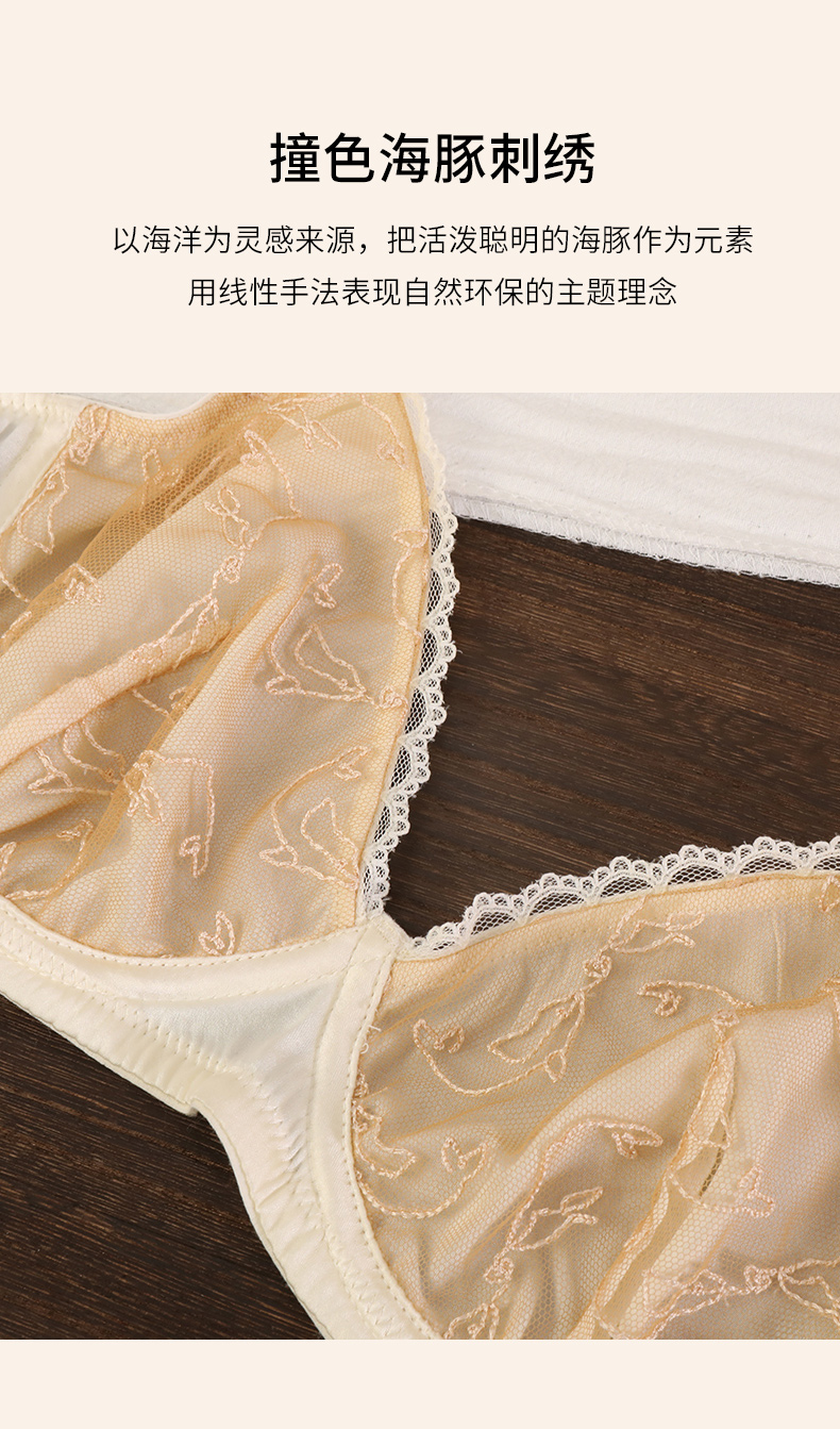 金三塔海豚刺绣内衣女法式蕾丝宽肩带小胸聚拢上托真丝文胸套装 NZFBC393