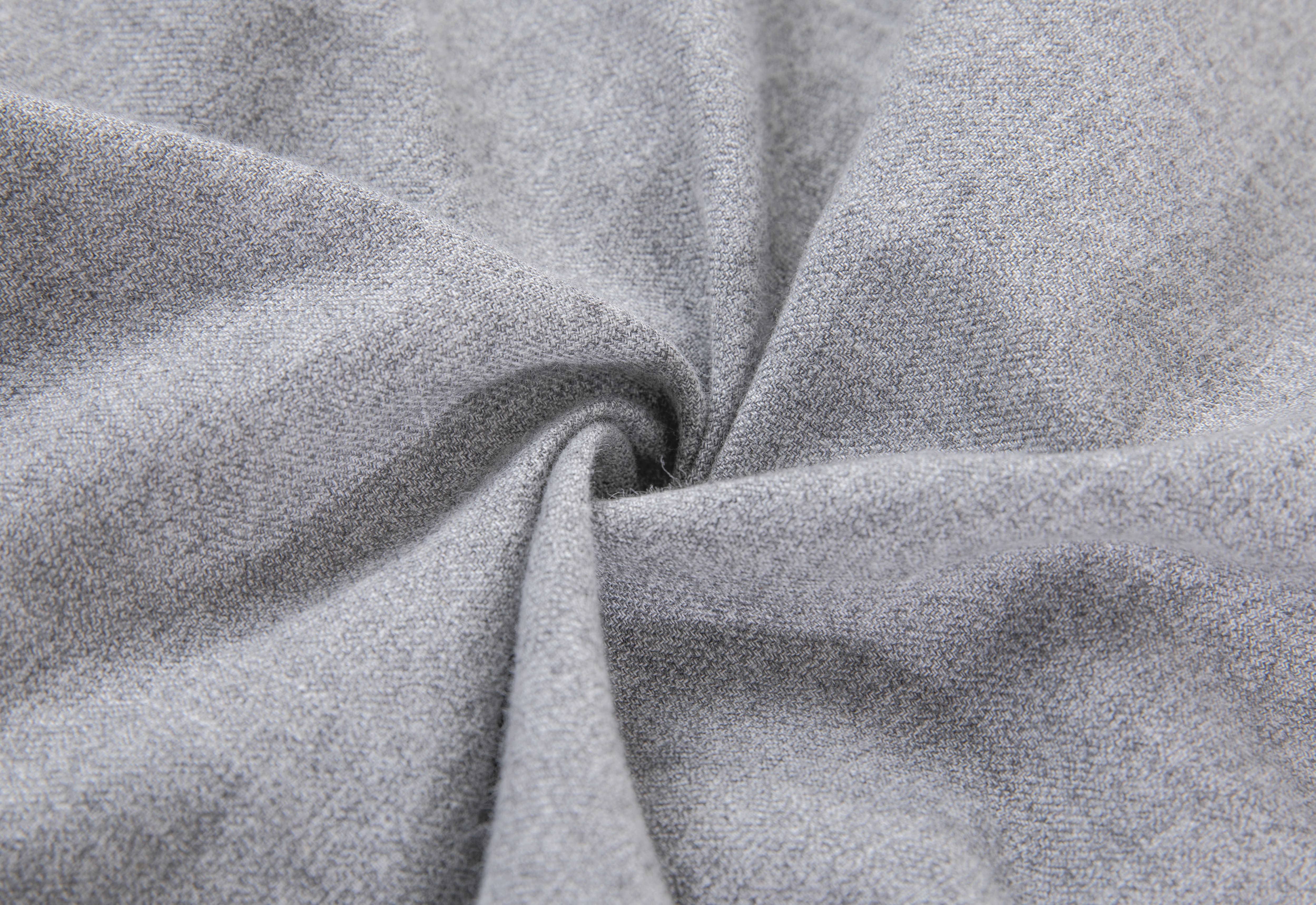 1.色纺纱在同一根纱线上显现出多种色彩,色彩丰厚、饱满柔软。用色纺纱织成的面料具有模糊的立体作用,色彩含蓄,天然、有层次