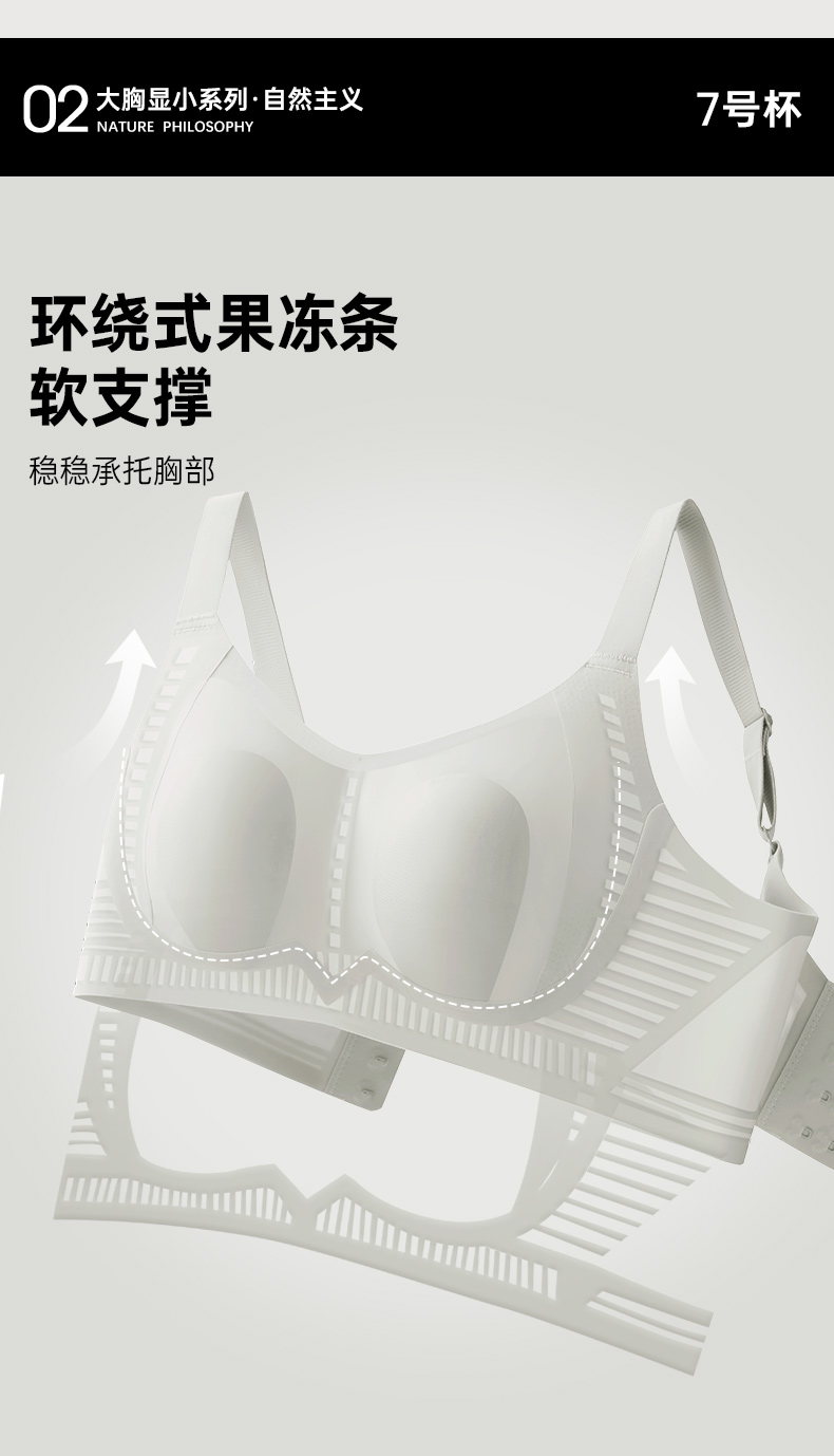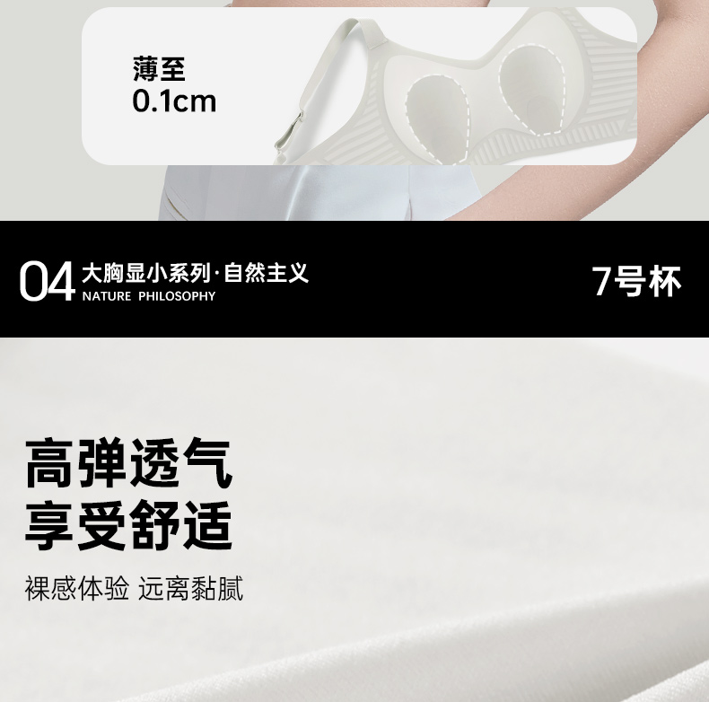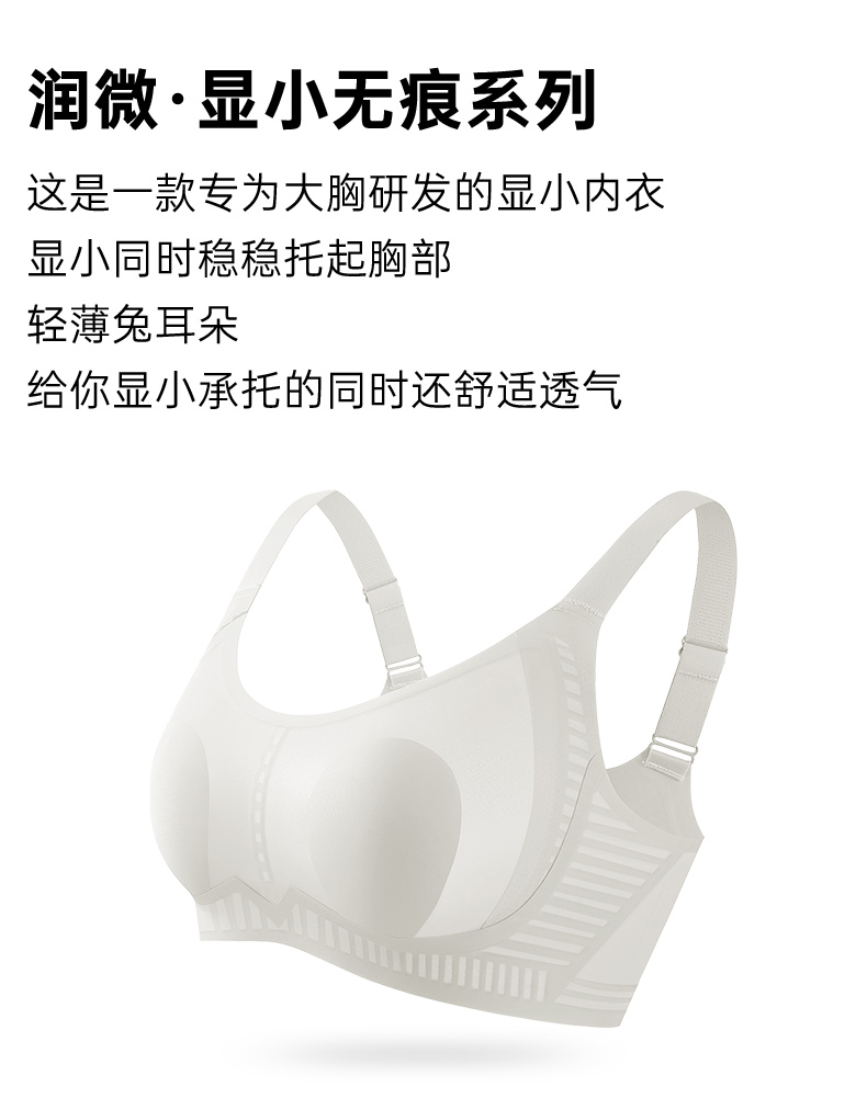 【298选3】D1-【B-D杯】【专利7号杯型】【大胸显小】润微内衣女大胸显小兔耳朵杯光面无痕轻薄款收副乳调整型文胸罩 古韵纤影/渺月轻痕