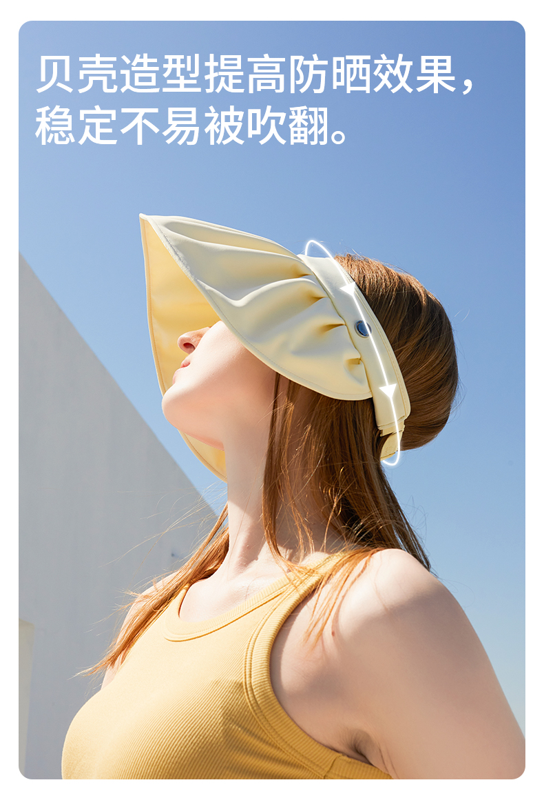 【空顶造型透气不闷热】素湃Supield贝壳遮阳帽F577超轻防护卷曲折叠出行便捷加长帽檐不易变形