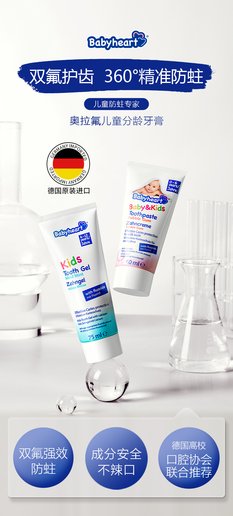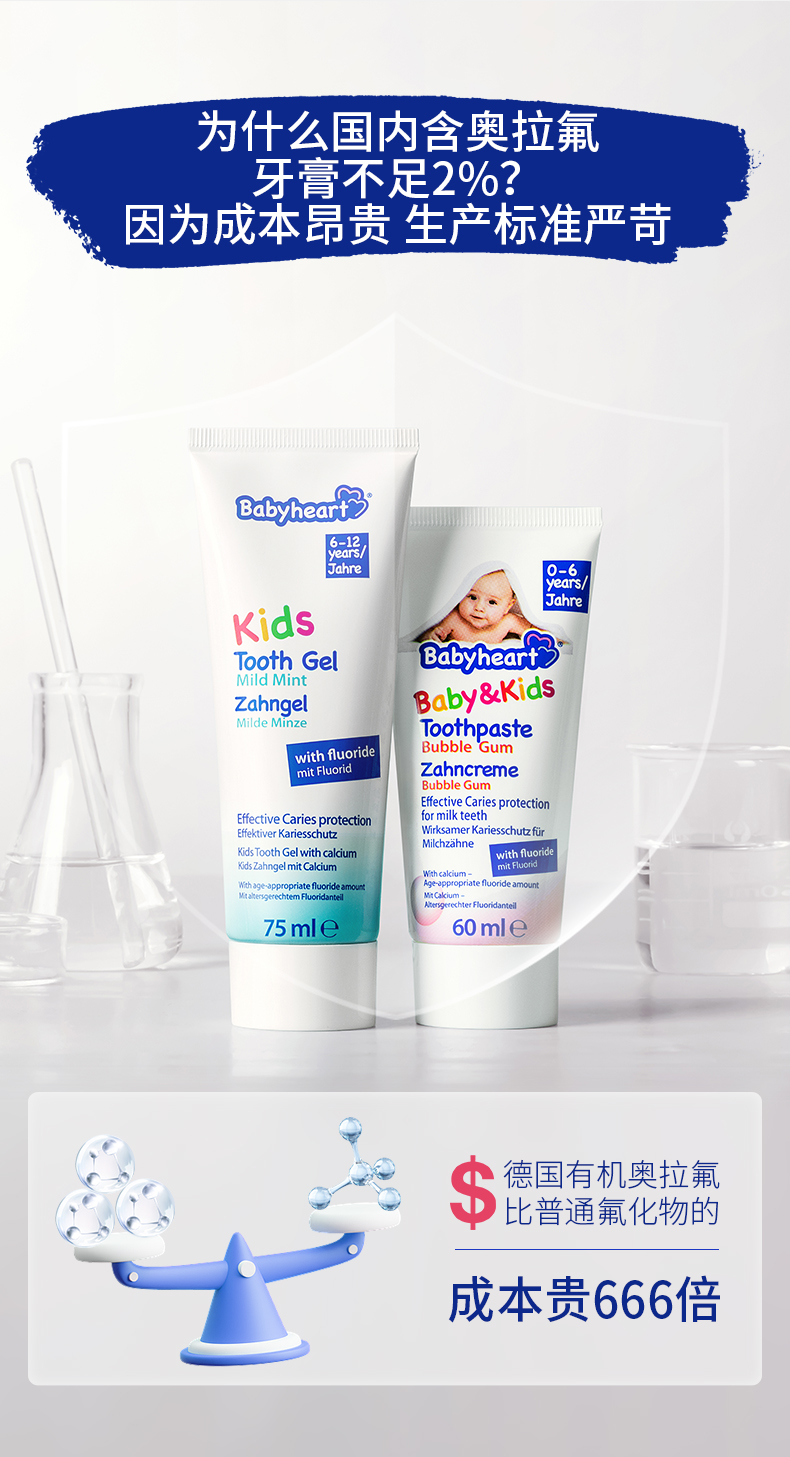 德国babyheart进口牙膏0-12岁含氟防蛀儿童牙膏