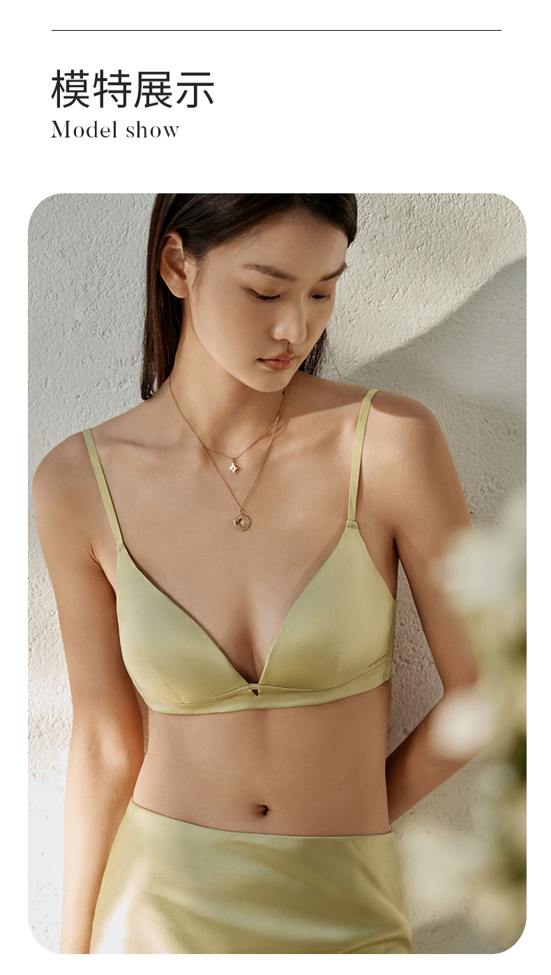 里外桑蚕丝】金三塔双面桑蚕丝缎面文胸女无钢圈性感V领文胸内衣新品(限价款) NZFFA303