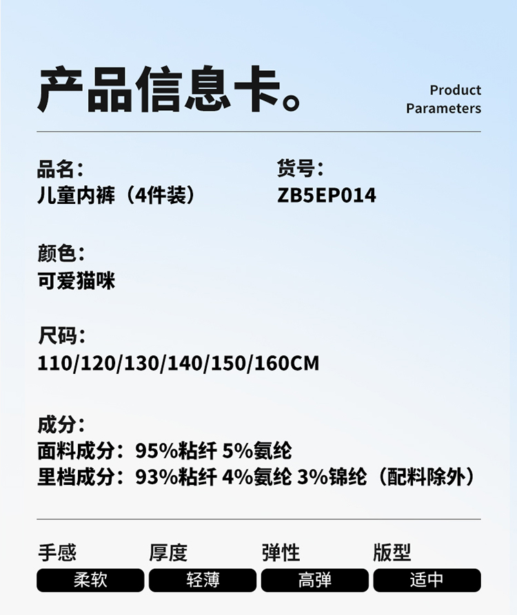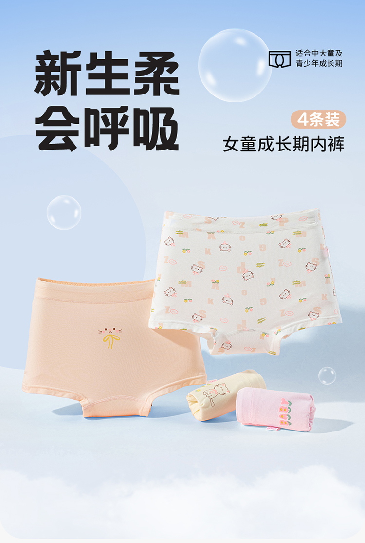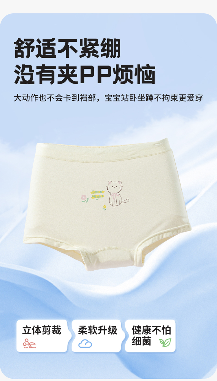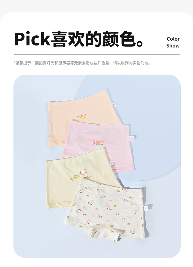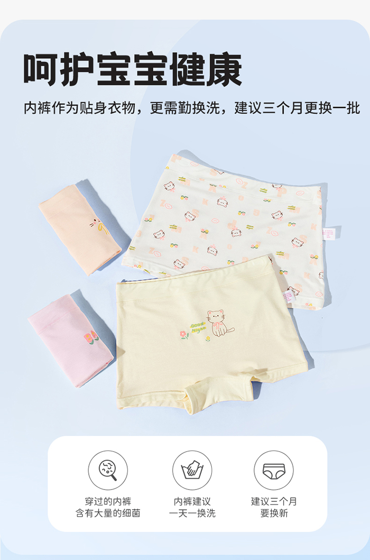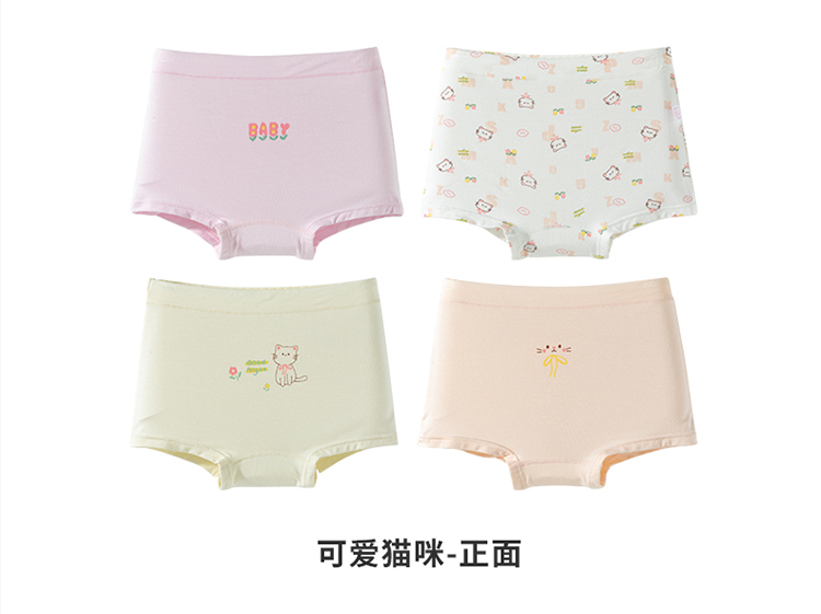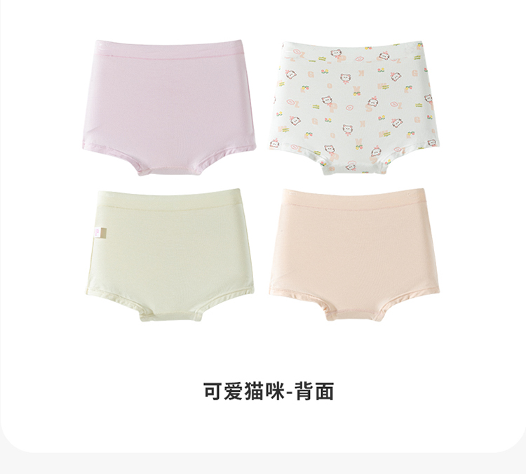 贝贝怡夏季新款女童亲肤透气平角内裤卡通猫咪印花女孩内裤(4件装)ZB5EP014
