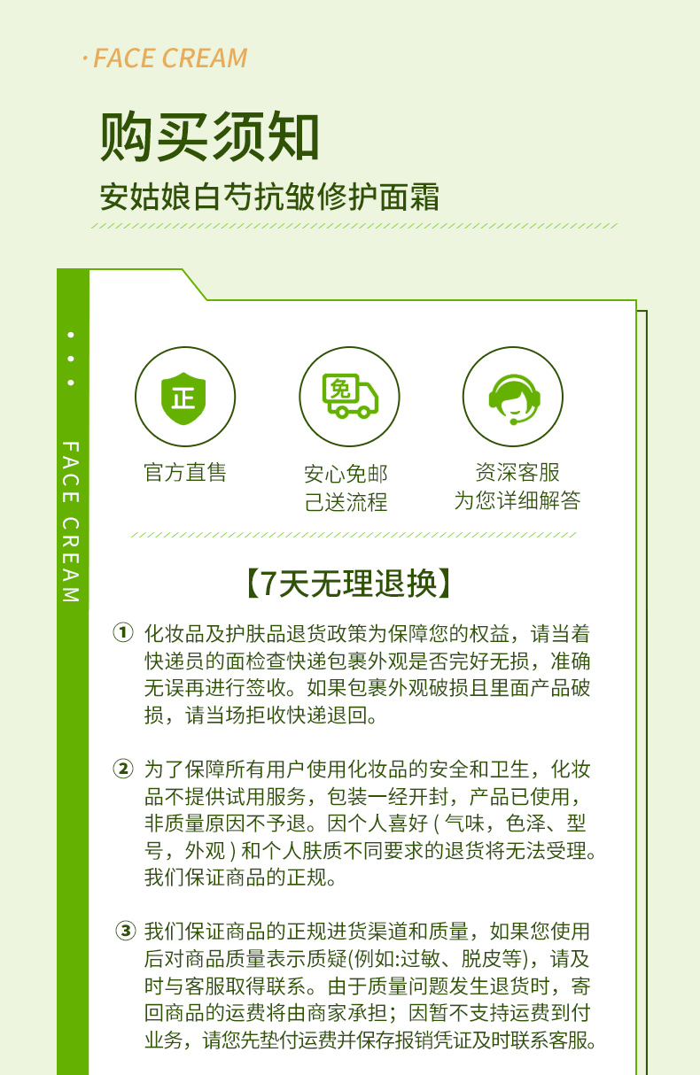 白芍抗皱修护面霜 (无香味)淡化细纹嫩滑透亮光泽保湿净素护肤植物美妆安姑娘