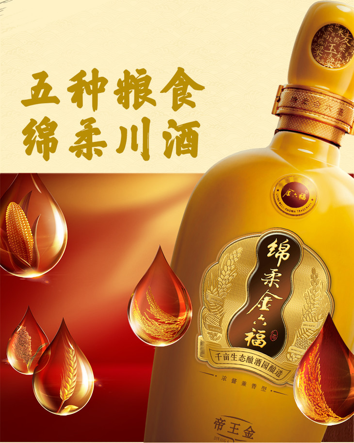 金六福绵柔帝王金 50.8度 500ml 浓酱兼香型白酒礼盒装