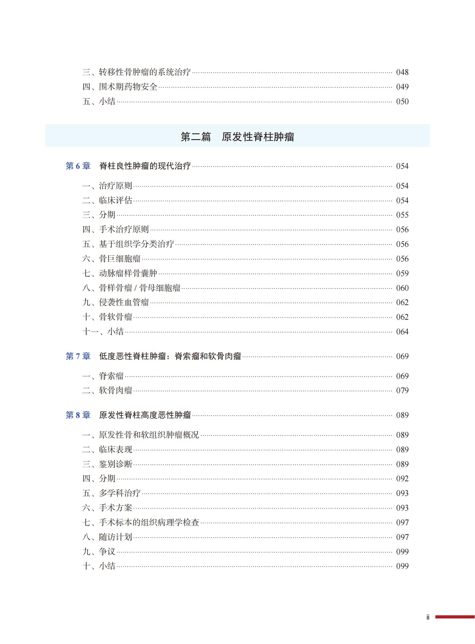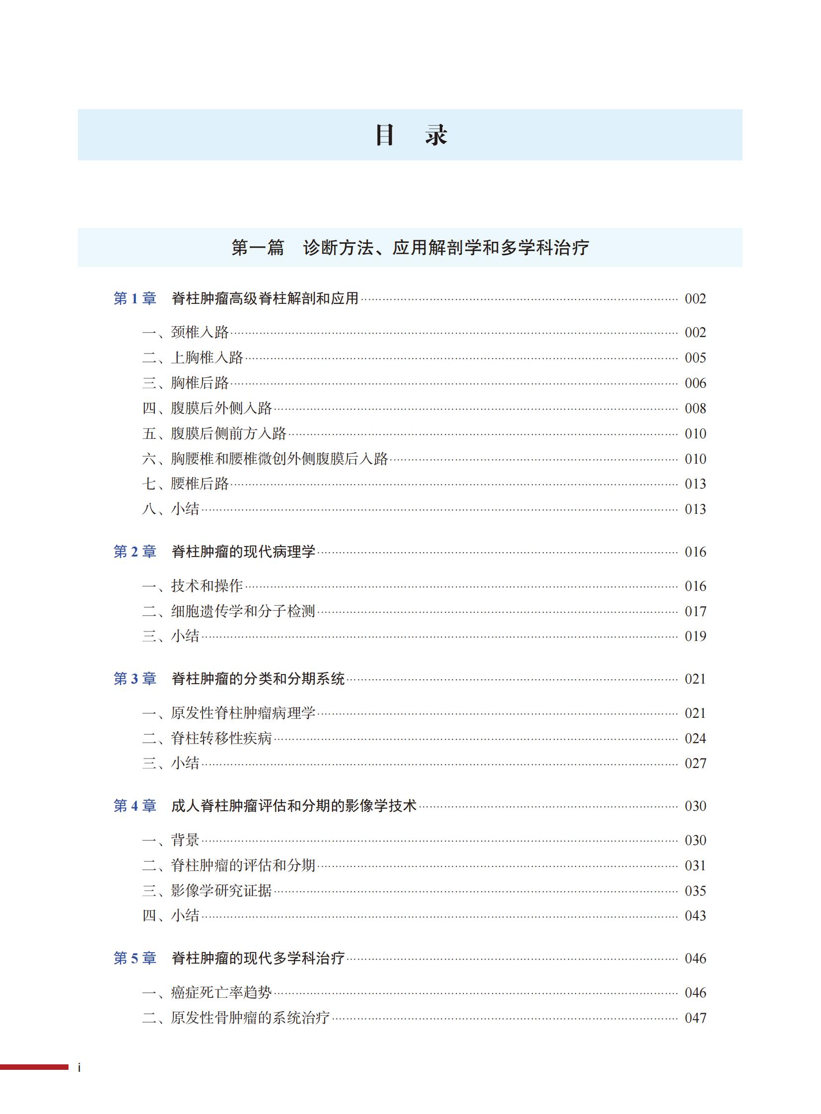 本书引进自 Springer 出版社,是一部系统介绍脊柱肿瘤外科学的实用著作。全书共四篇 22 章,不仅详细介绍了脊柱肿瘤的解剖、现代病理学、分类分期、影像学诊断等基础知识,还介绍了脊柱原发性肿瘤、脊柱转移瘤及特殊解剖部位肿瘤的现代治疗理念、治疗技术和现代微创治疗技术。书中所述内容均基于真实病例和术者经验,同时配有大量影像学和手术前后高清照片,为临床医师提供了丰富的参考资料,对国内从事脊柱外科临床工作的医师大有裨益。本书内容实用、图片丰富、言简意赅、重点突出,既可作为住院医师和入门脊柱外科医师的指导书,又可作为中、高级脊柱外科医师了解新技术、新理念的参考书。