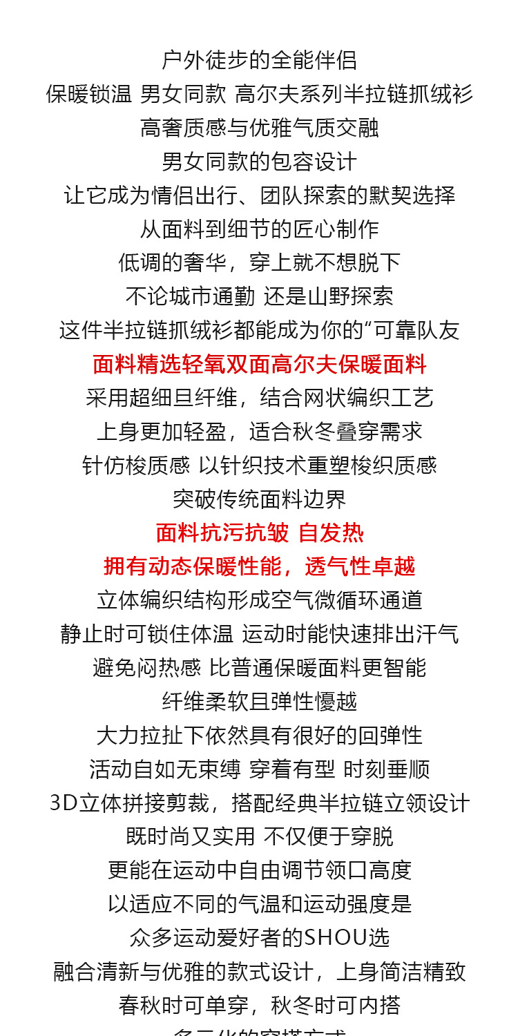 2025秋冬季新款内搭打底长袖T恤!户外徒步男女款半拉链抓绒!