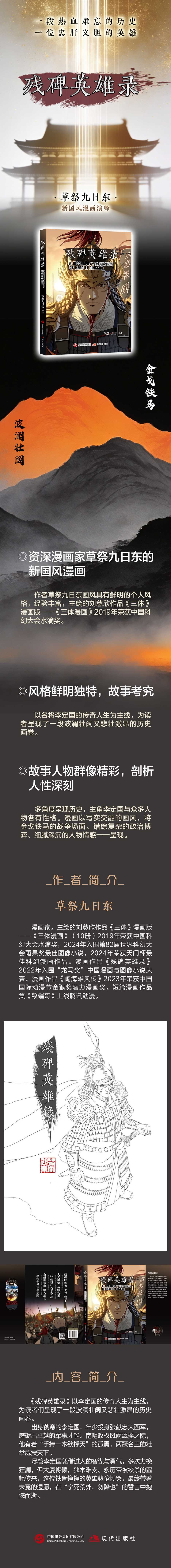 ◎资深漫画家草祭九日东的新国风漫画,风格鲜明独特。 作者草祭九日东画风具有鲜明的个人风格,经验丰富,主绘的刘慈欣作品《三体》漫画版《三体漫画》2019年荣获中国科幻大会水滴奖。 ◎风格鲜明独特,故事考究。 以英雄李定国的传奇人生为主线,为读者呈现一段波澜壮阔又悲壮激昂的历史画卷。 ◎故事人物性格鲜明,群像精彩,剖析人性深刻。 多角度呈现历史,主角李定国与故事人物众多,各有性格。漫画以写实交融的画风,将金戈铁马的战争场面、错综复杂的政治博弈、细腻深沉的人物情感一一呈现。 |