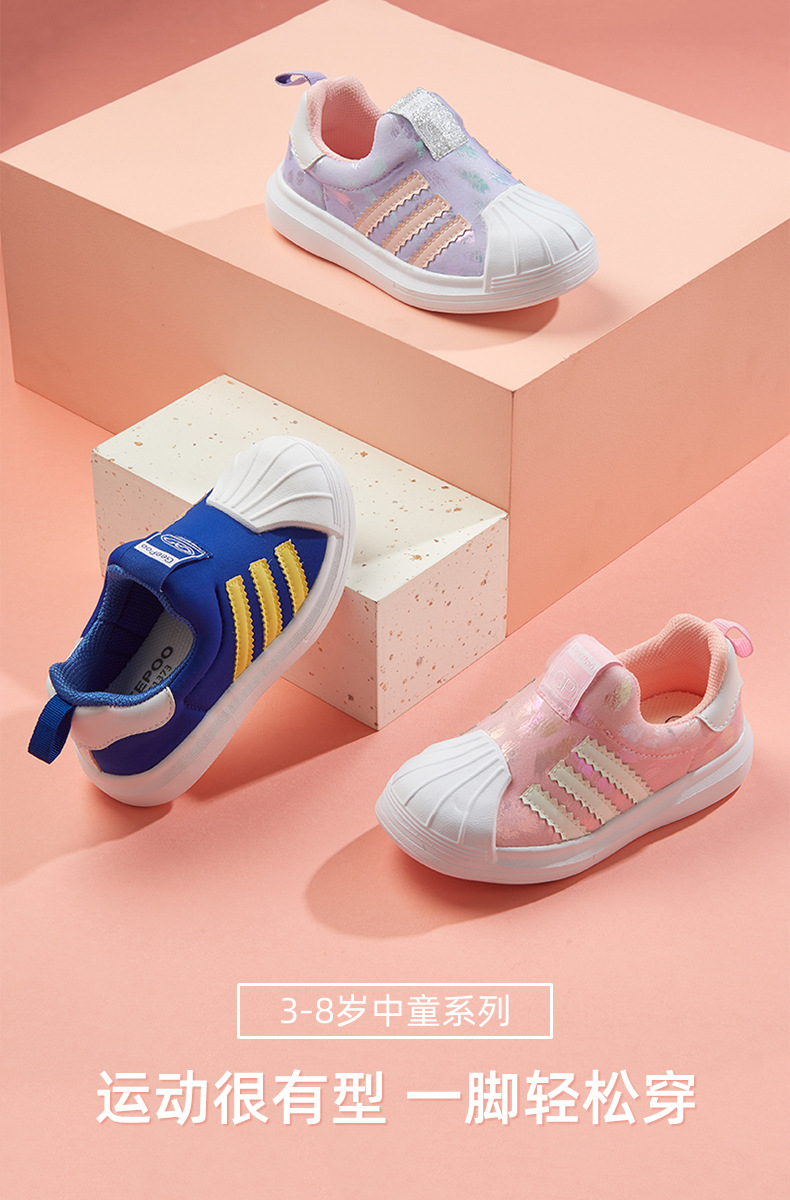 小猪快跑童鞋 贝壳头3-8岁儿童休闲鞋儿童帆布鞋
