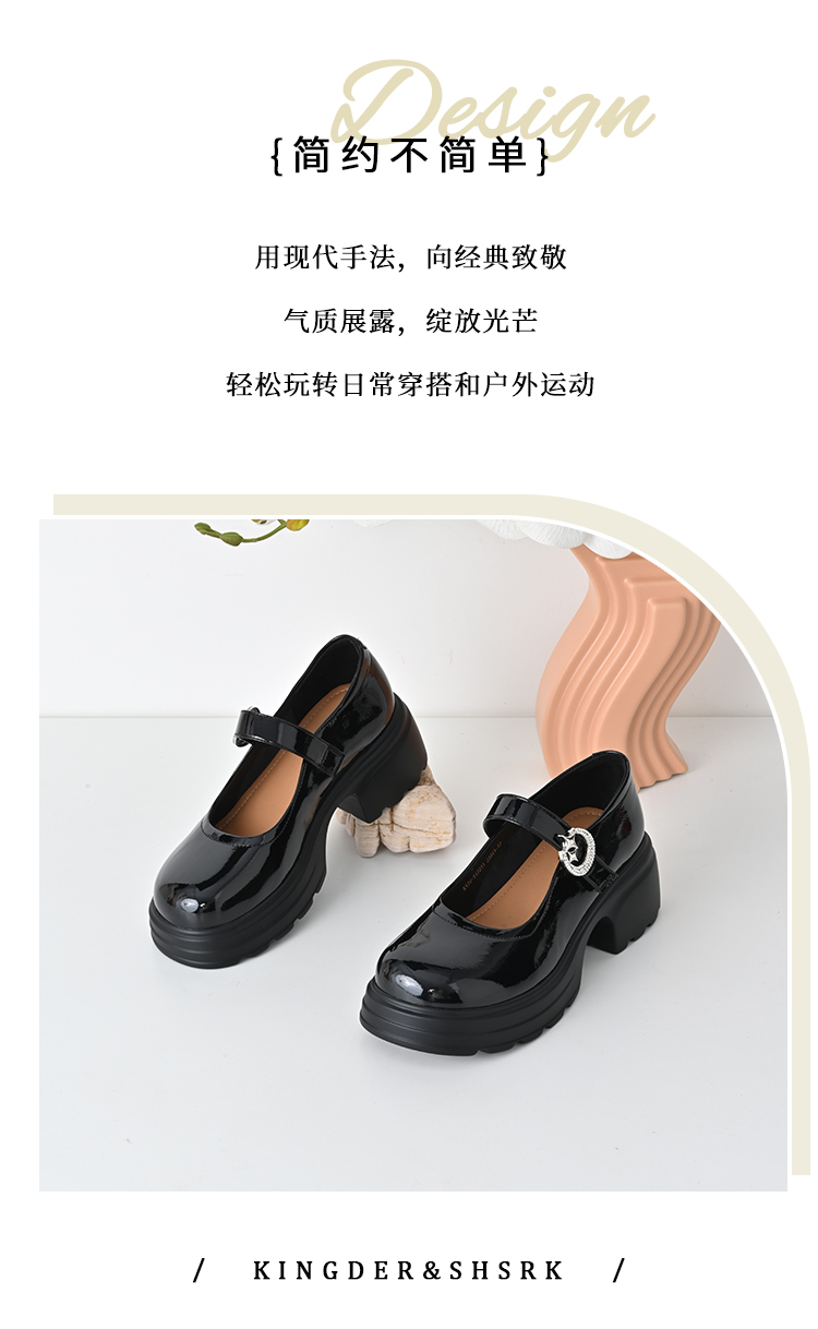 经典鲨2025春新款百搭圆头女神范儿甜美中粗跟玛丽珍单鞋女KW79-517011