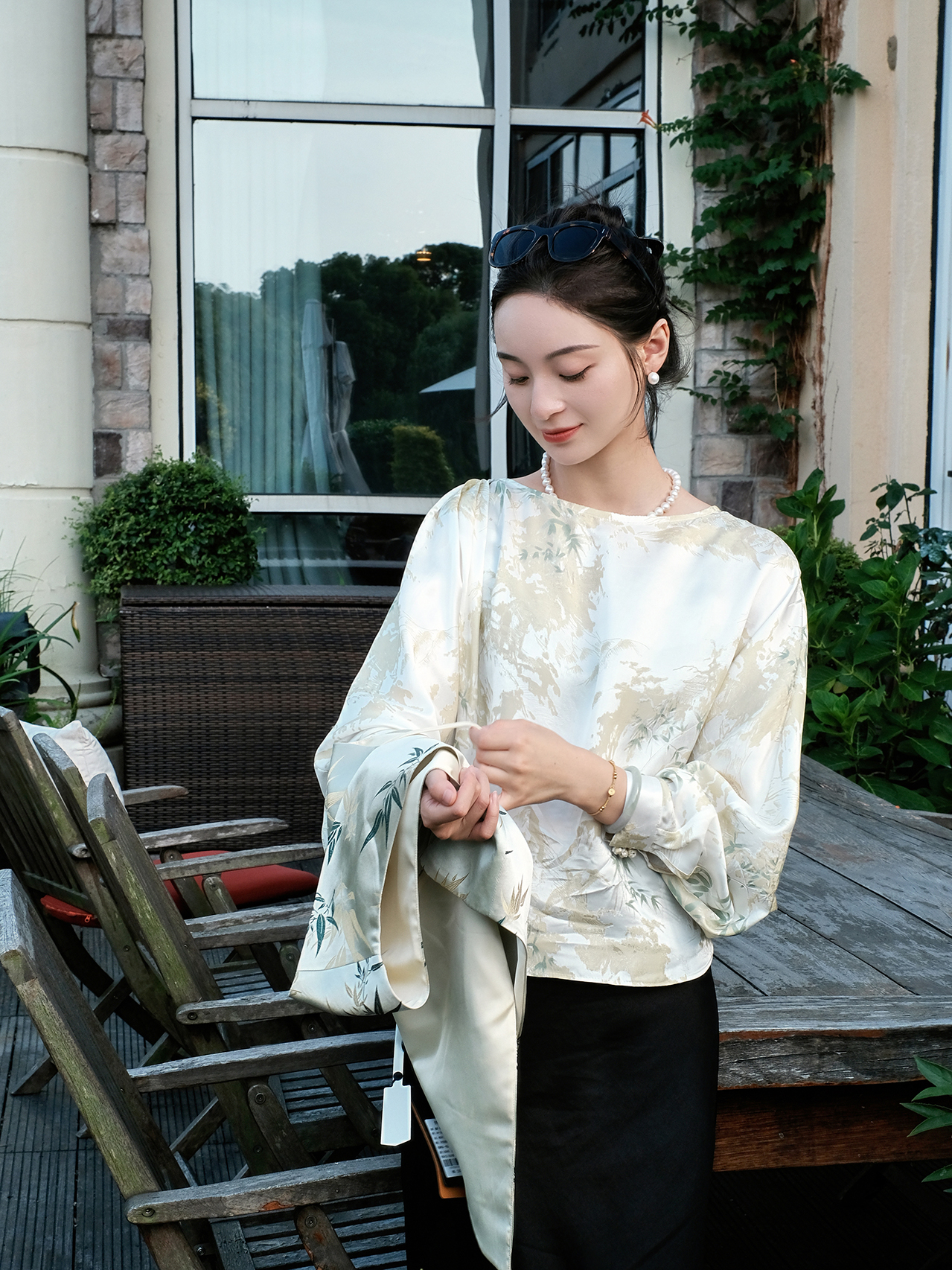 盛唐牡丹 |竹林亭台真丝上衣