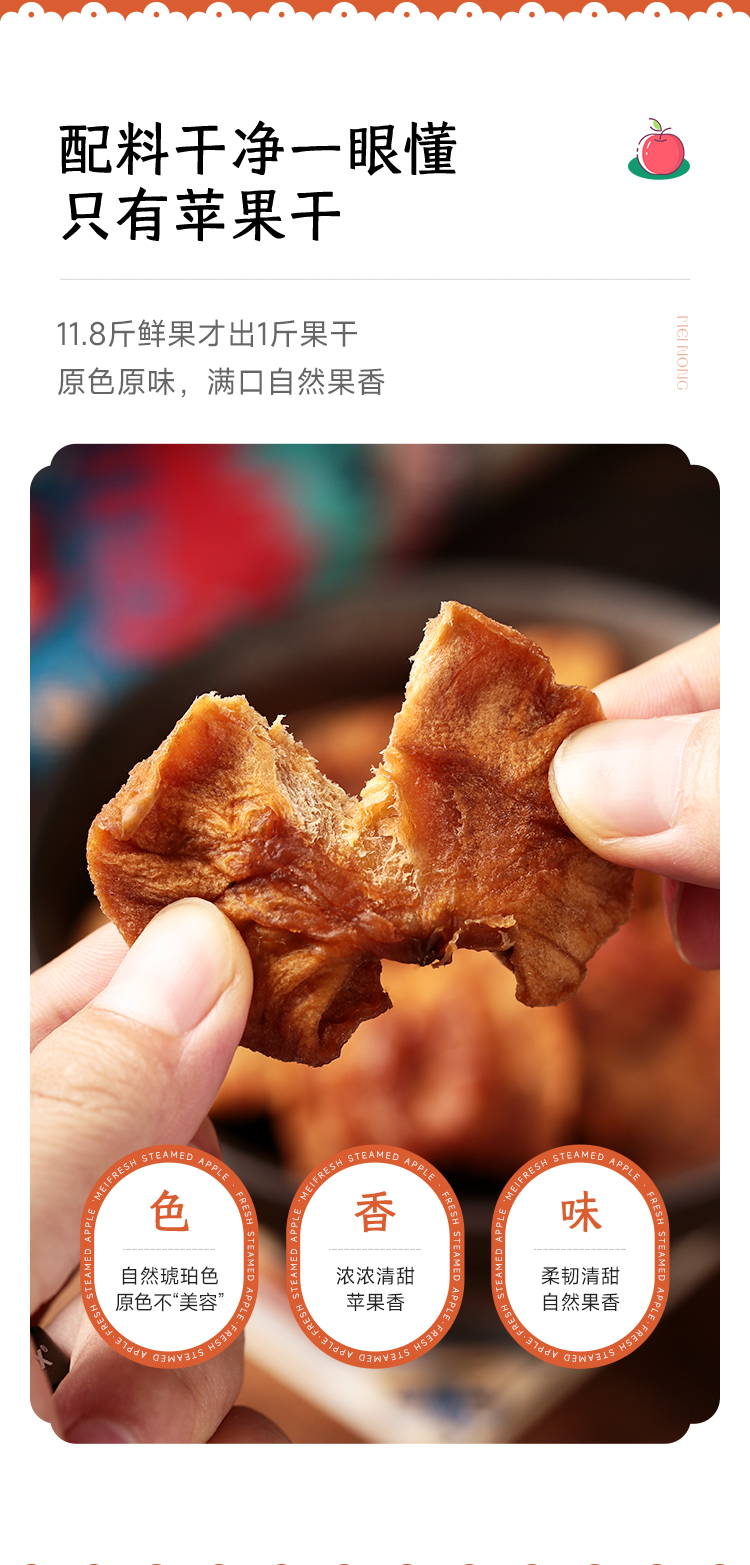 【清心湖甄选&全网比价】鲜蒸苹果干560g 新疆阿克苏冰糖心苹果制干 非油炸非糖渍 鲜蒸更软韧 配料干净只有苹果 老人小孩都能吃 独立包装开袋即食