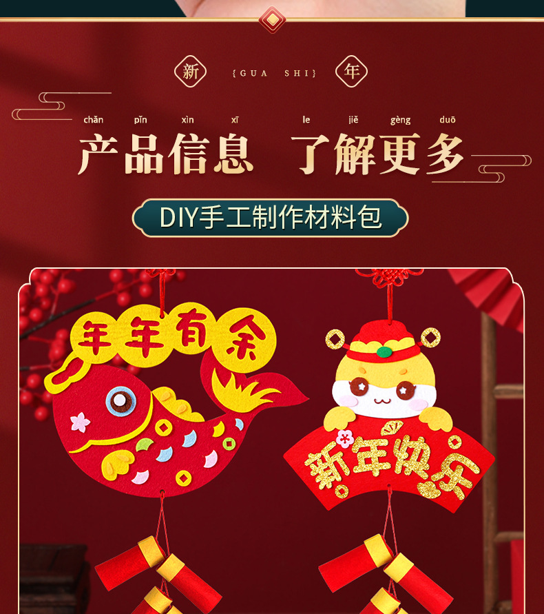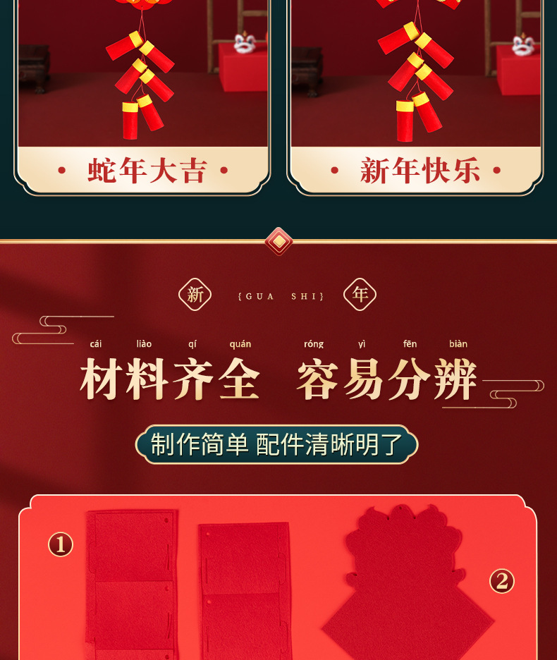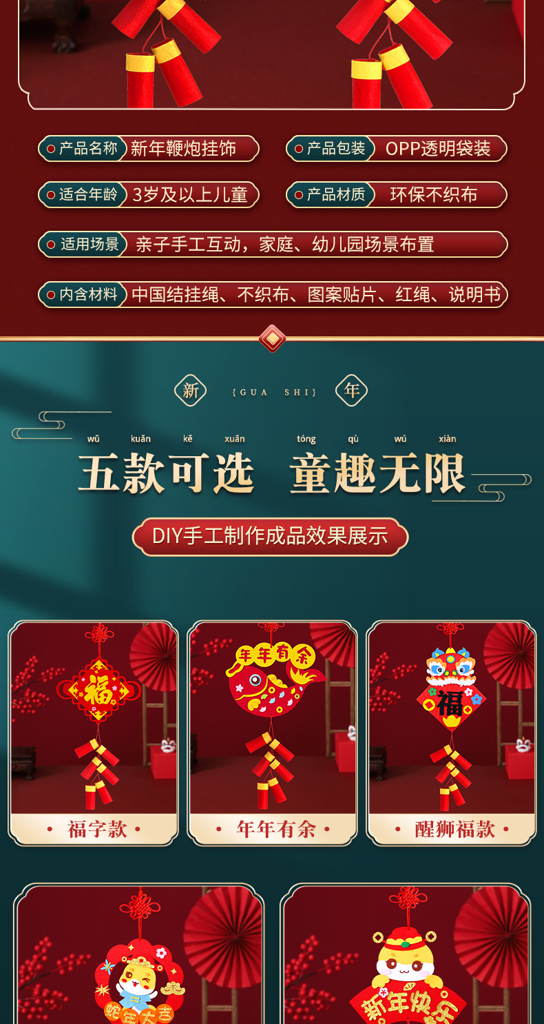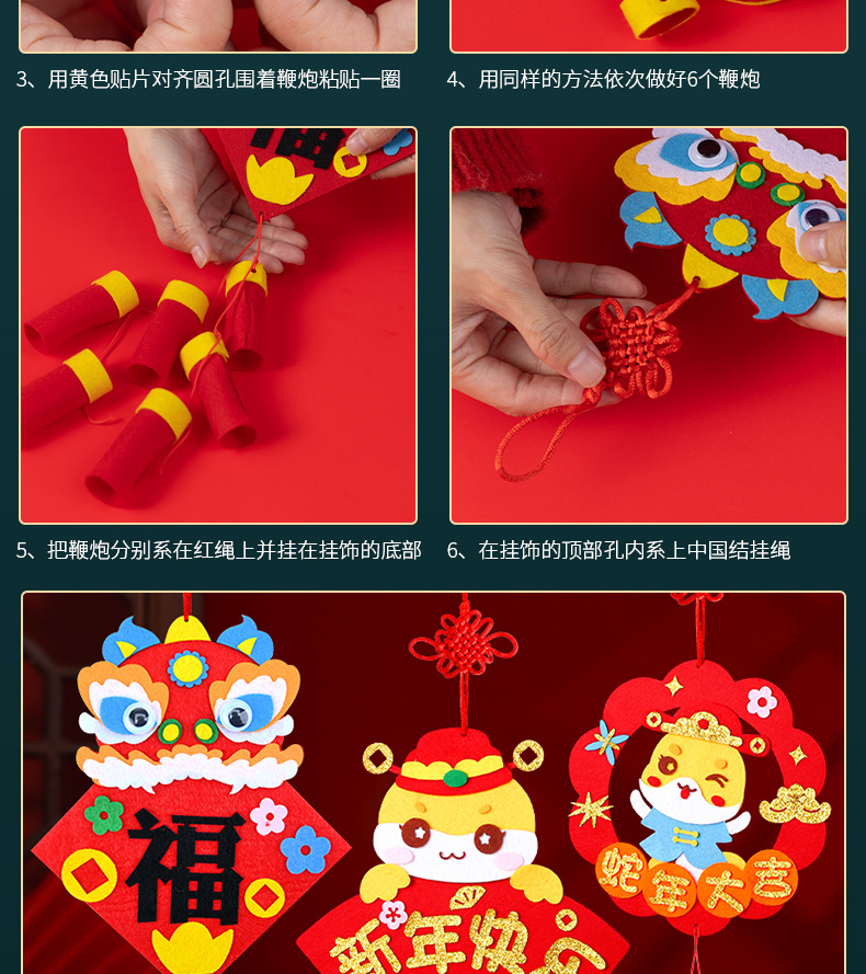 【秒杀❗️9.9抢🔥新年鞭炮挂饰】国风元素,传统文化,能让孩子亲手制作的春节装饰!手工diy幼儿园元旦装儿童手工材料包创意挂件