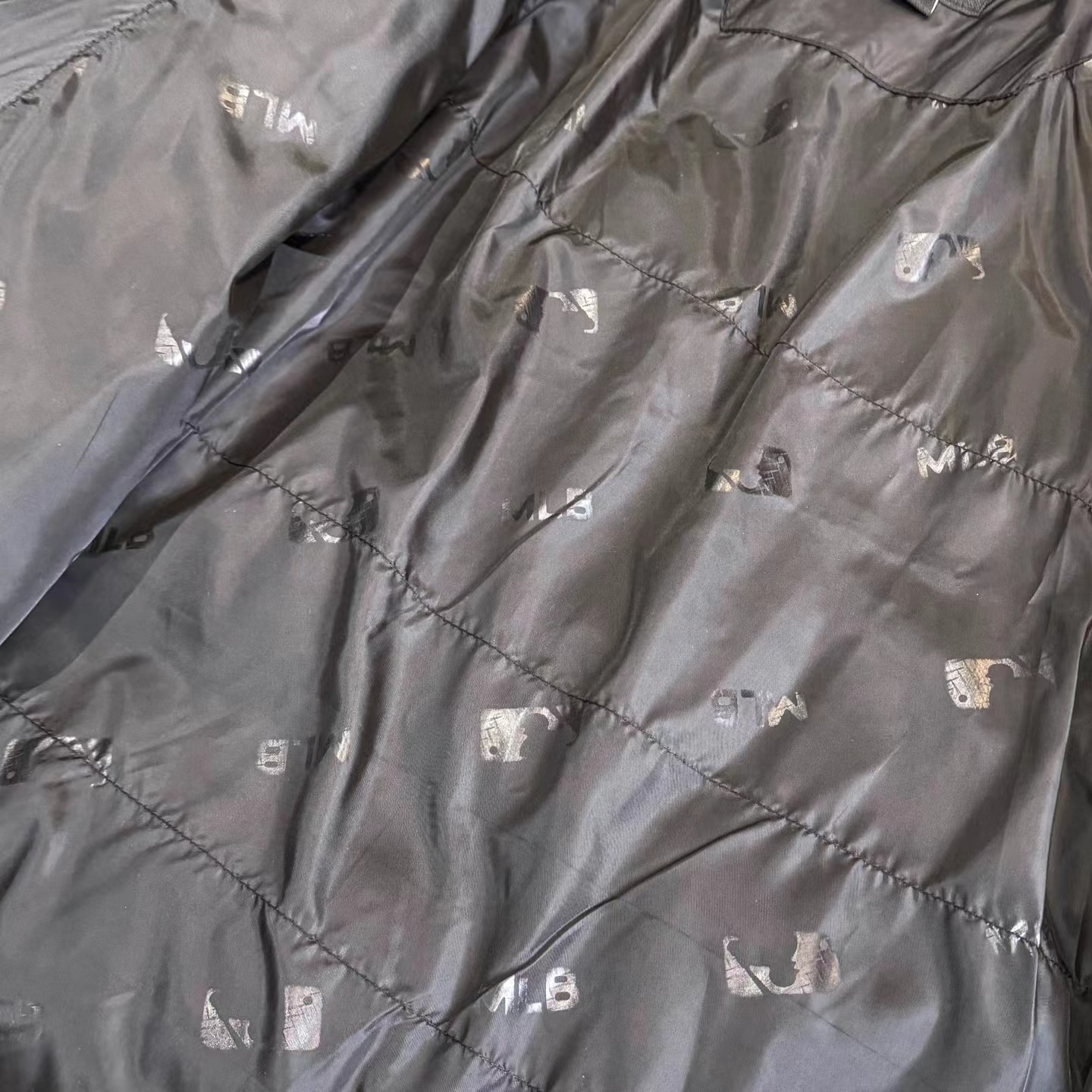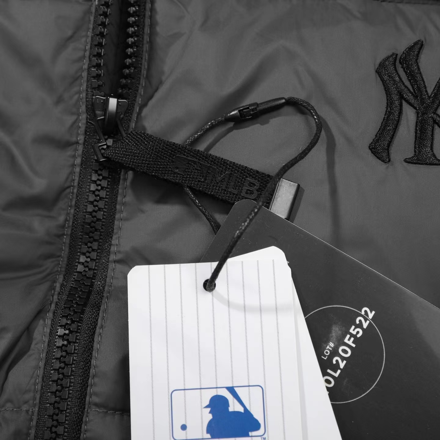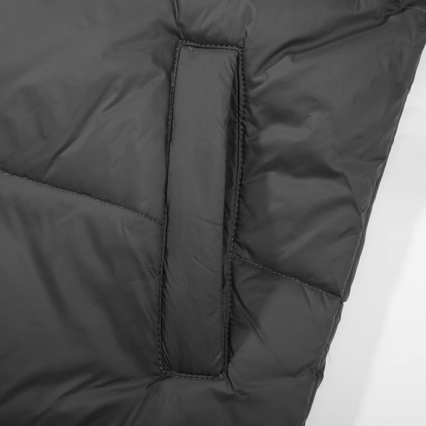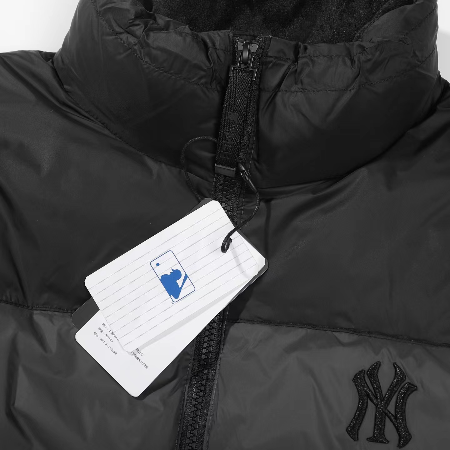 刺绣小logo图案宽松拉链长袖几何图案灰黑拼色立领羽绒服 男女同款 面料采用20D尼丝纺贴(烫金膜)三层涂层工艺让面料挺而细腻。