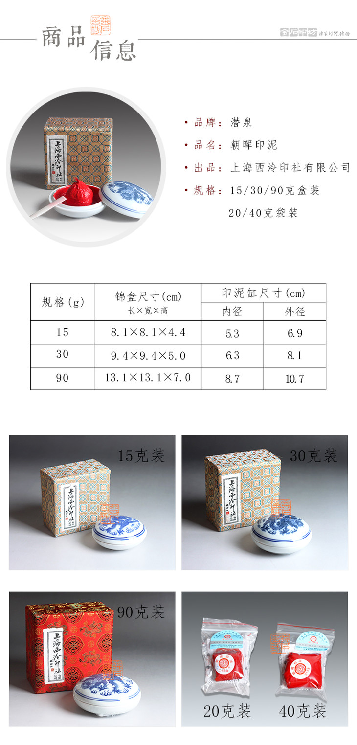金石印坊 上海西泠 潜泉盒装朝晖印泥 盒装书画印泥