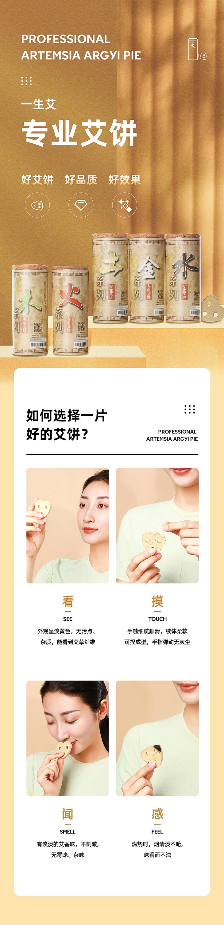 2. 艾饼目前一共有3种(其中2种是大艾饼,1种是小艾饼,尺寸不一样),而每种包含木、火、土、金、水5个系列。如不清楚,请在购前咨询客服。