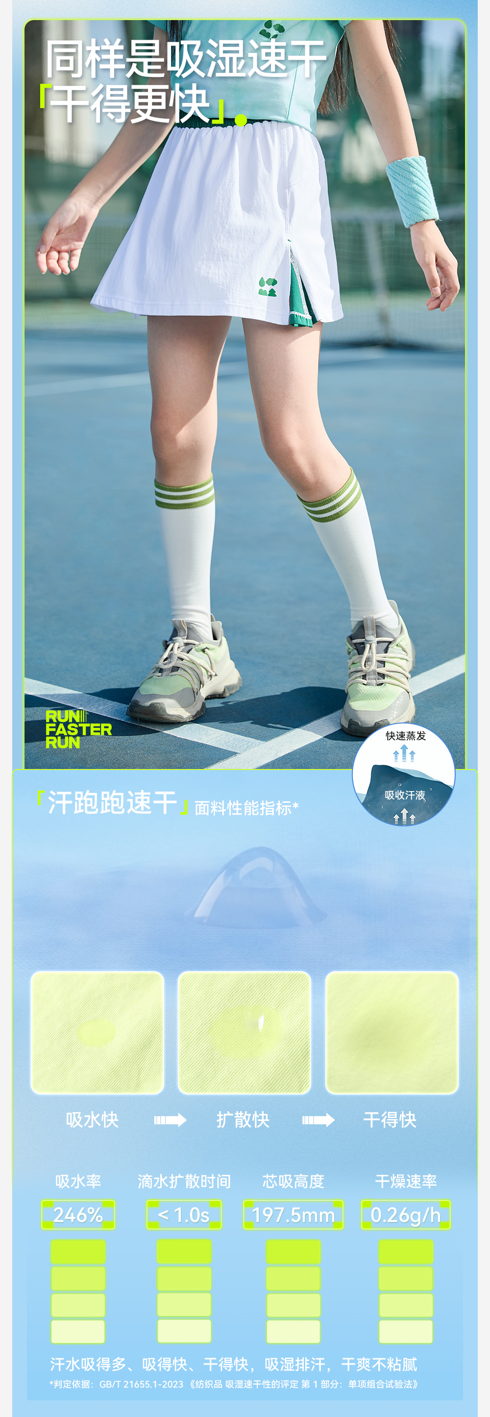 [屁侠推荐]汗跑跑运动速干短裙森林棠25夏款女童透气排汗运动速干短裙A字裙41122515