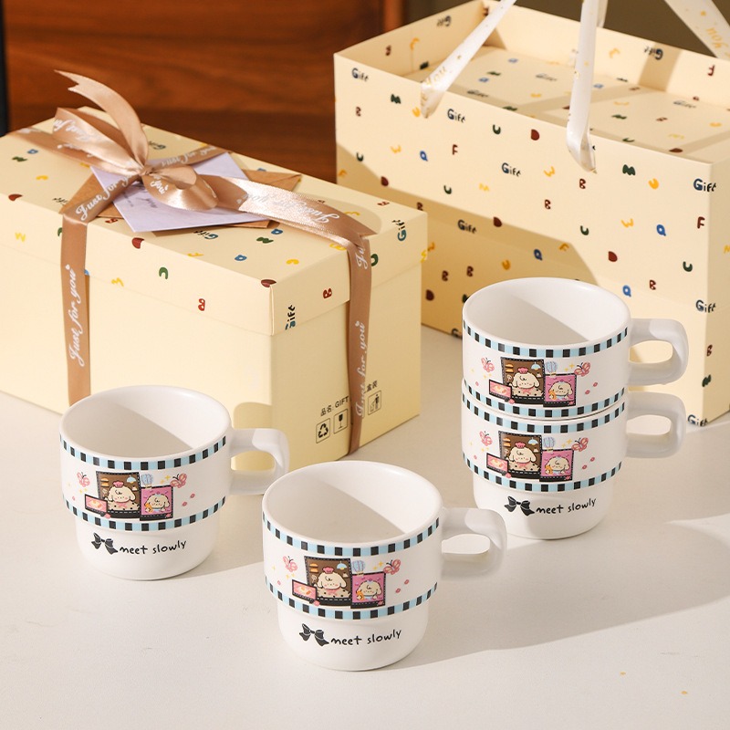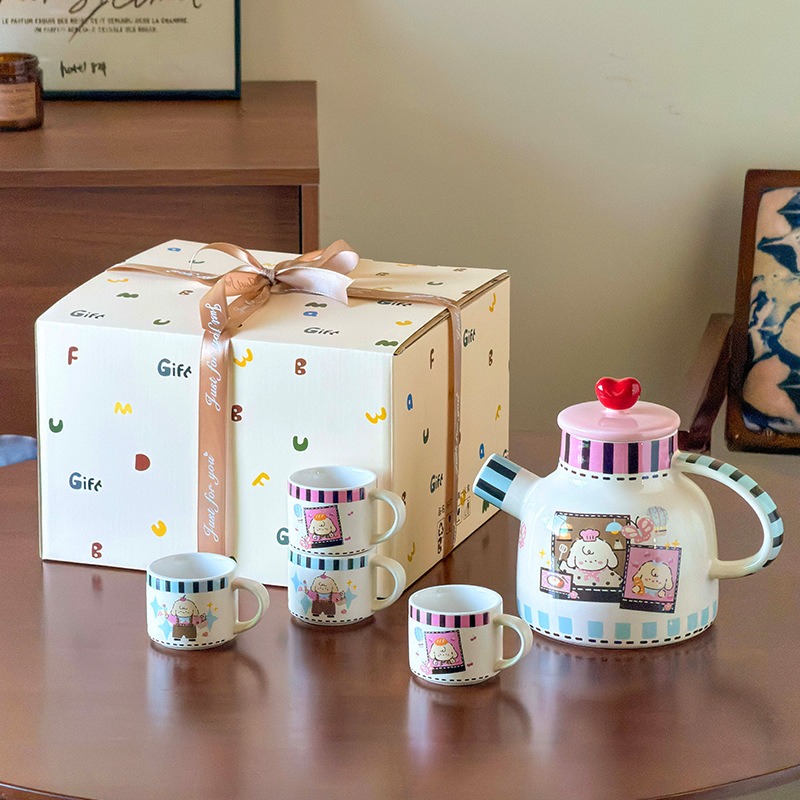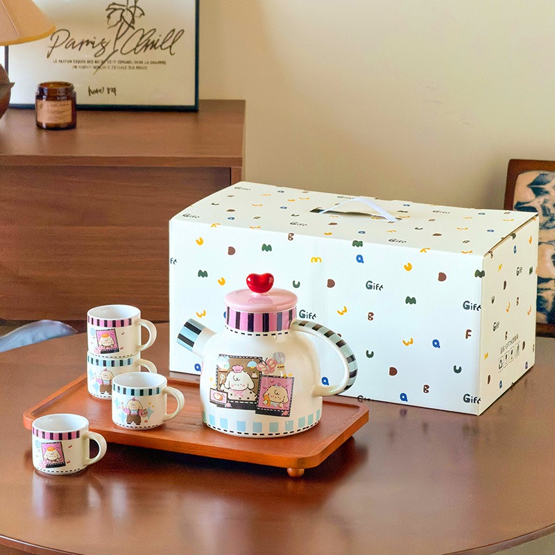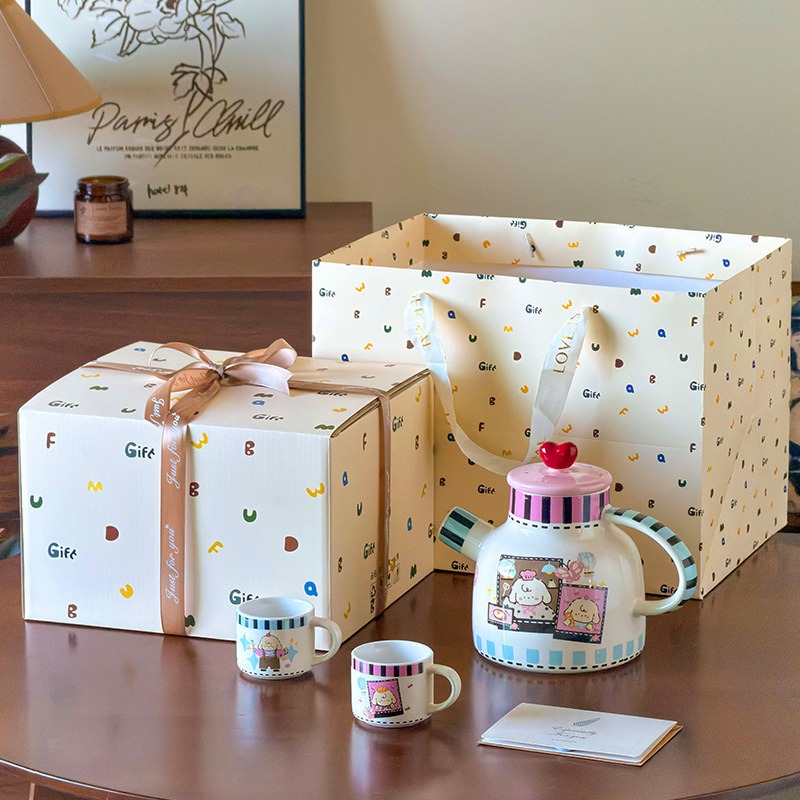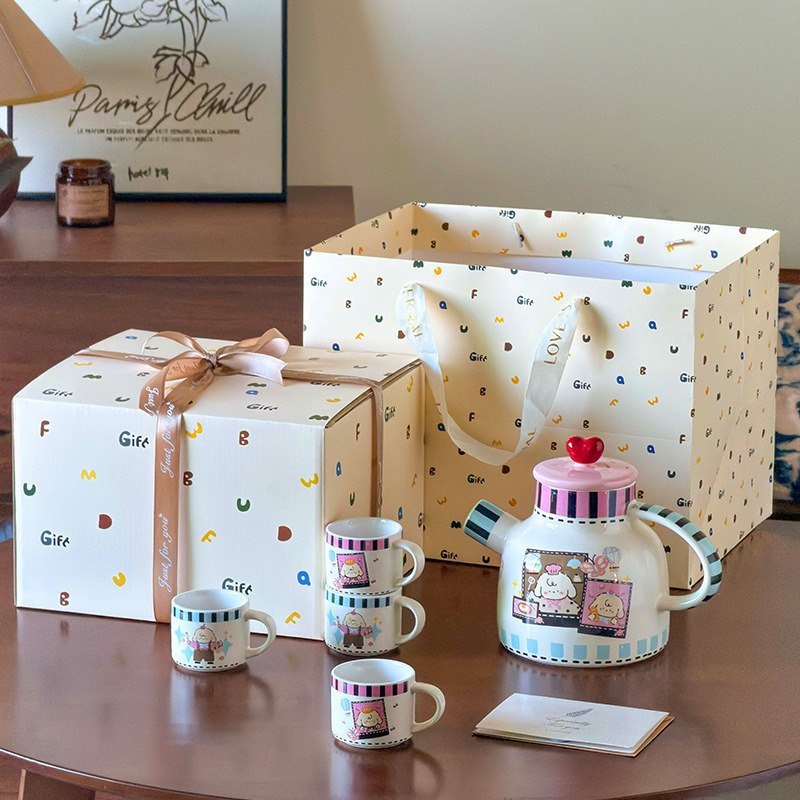 【烘焙小羊系列水具】 萌趣卡通一壶四杯礼袋装陶瓷茶具套装家用早餐杯茶杯